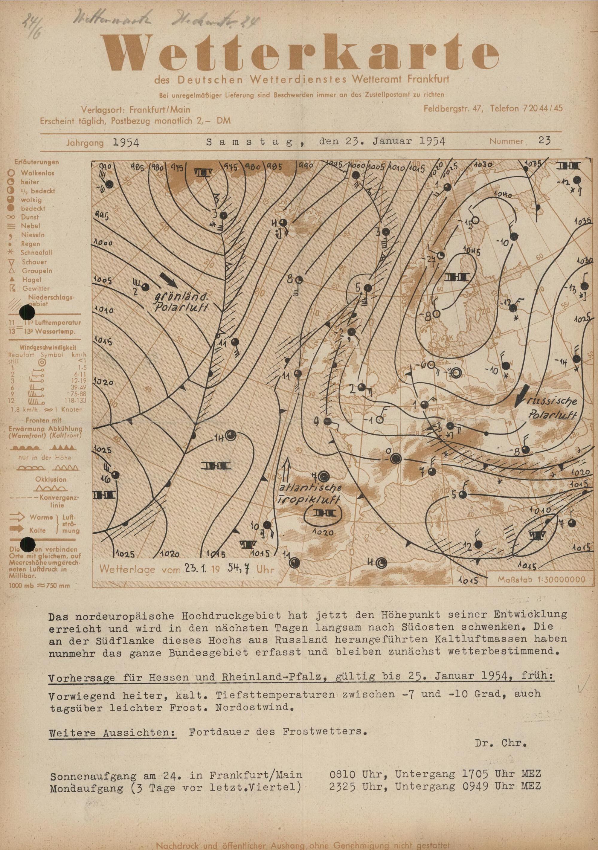 Wetterkarte des Deutschen Wetterdienstes, Wetteramt Frankfurt