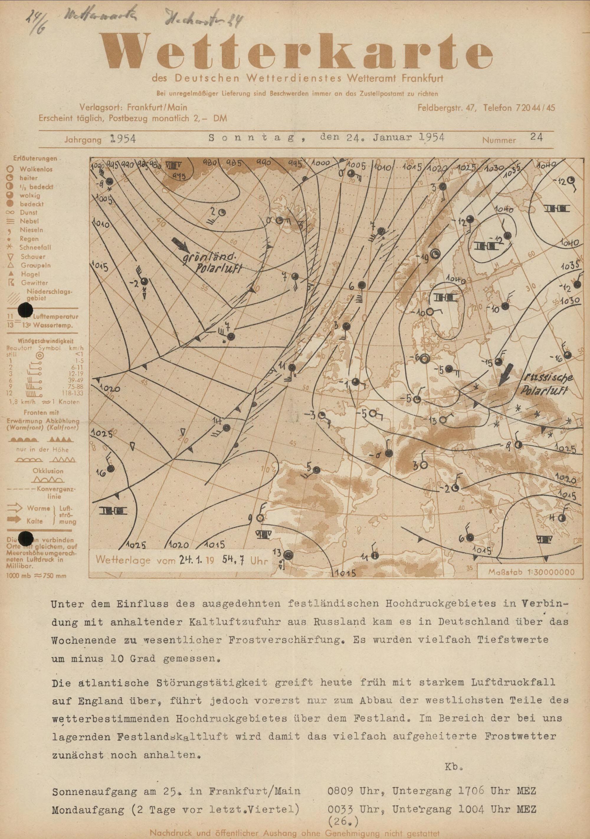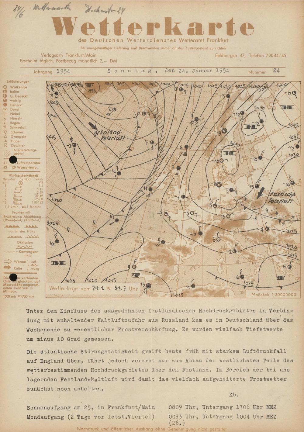 Wetterkarte des Deutschen Wetterdienstes, Wetteramt Frankfurt