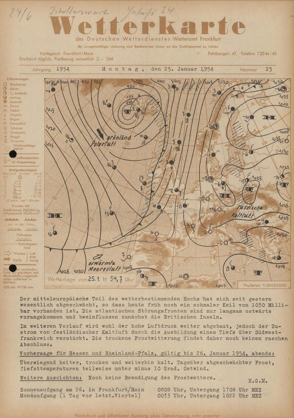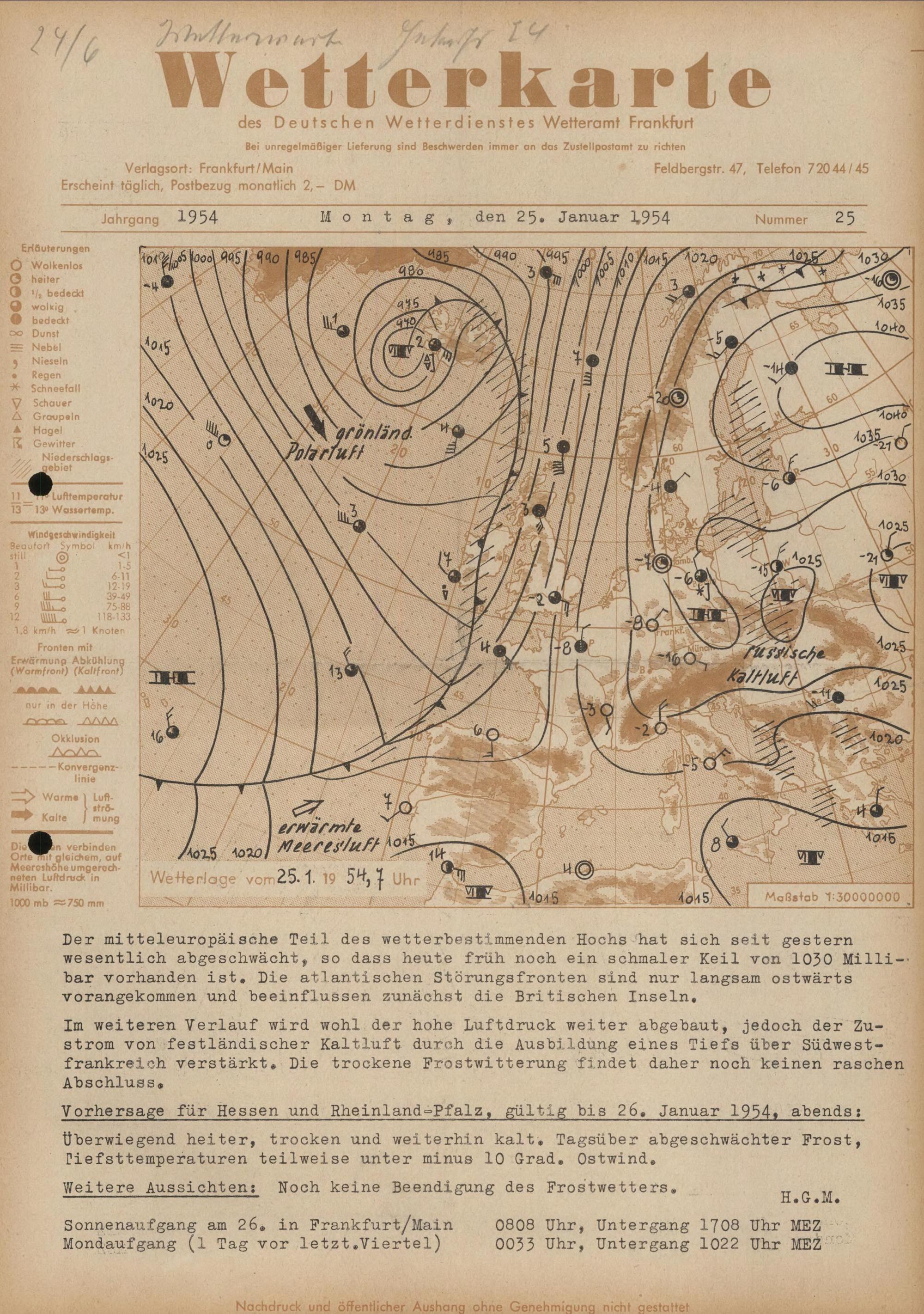 Wetterkarte des Deutschen Wetterdienstes, Wetteramt Frankfurt