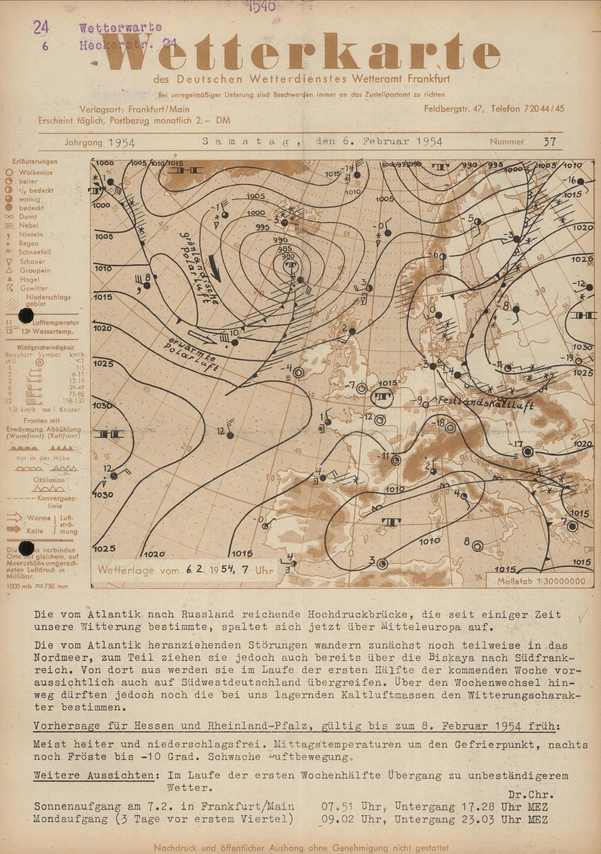 Wetterkarte des Deutschen Wetterdienstes, Wetteramt Frankfurt