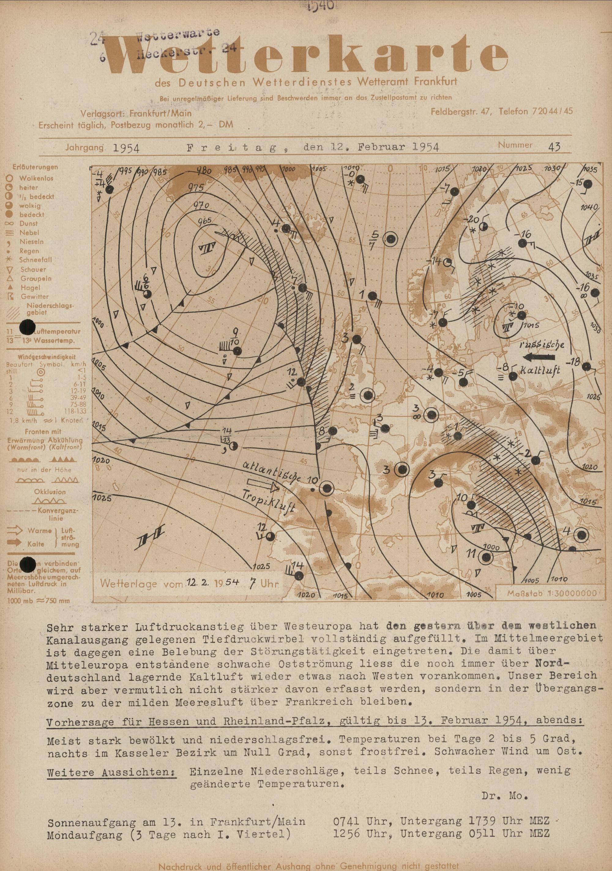 Wetterkarte des Deutschen Wetterdienstes, Wetteramt Frankfurt