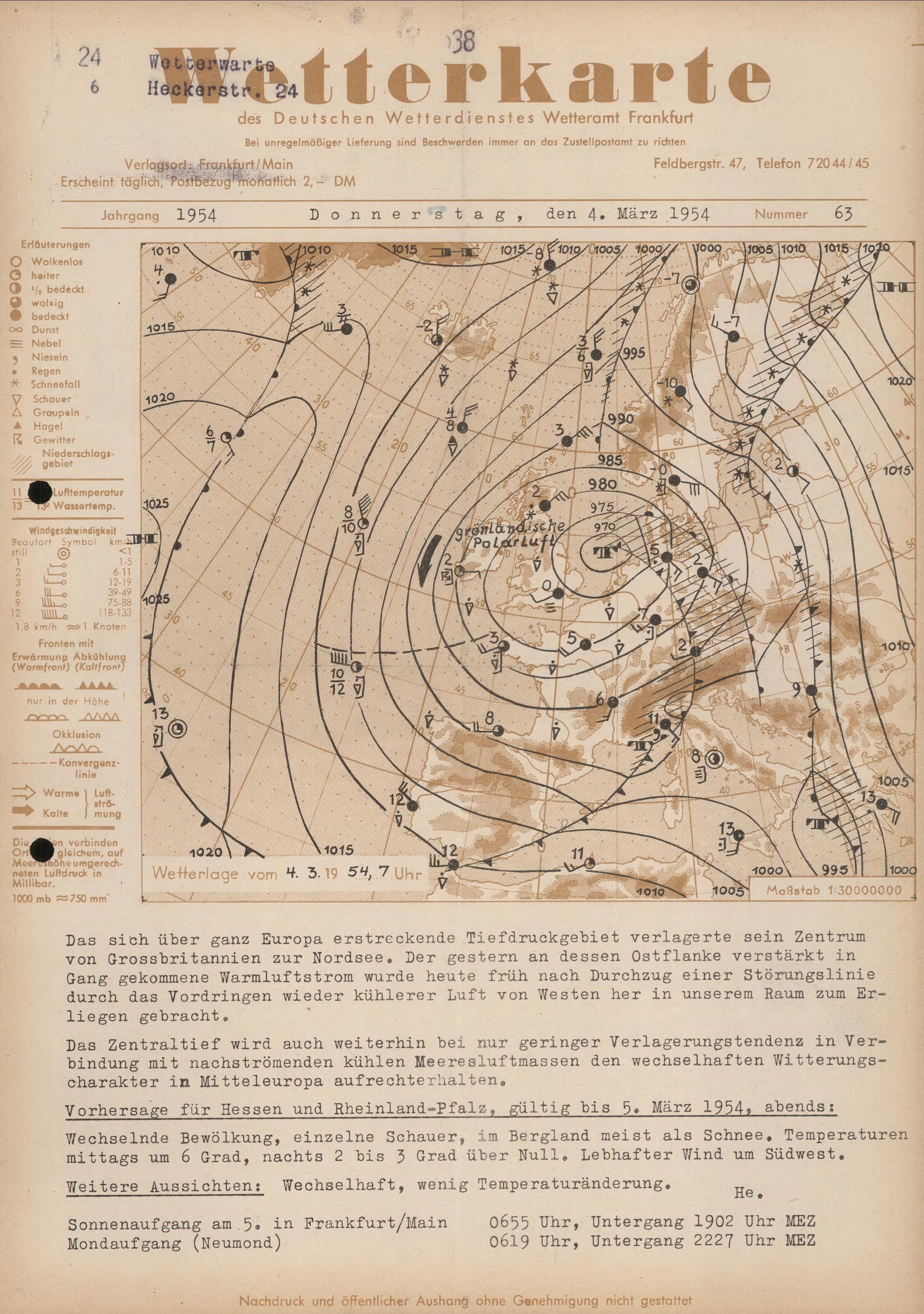 Wetterkarte des Deutschen Wetterdienstes, Wetteramt Frankfurt