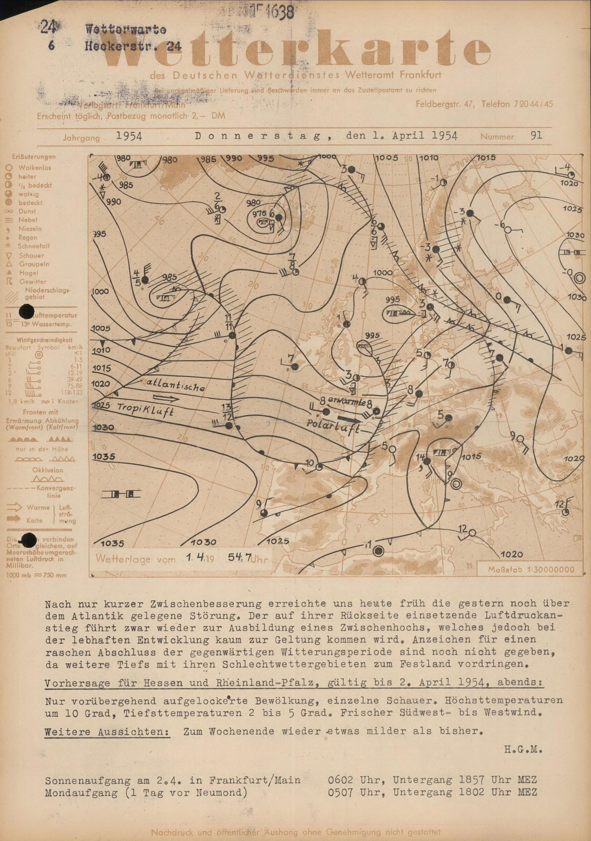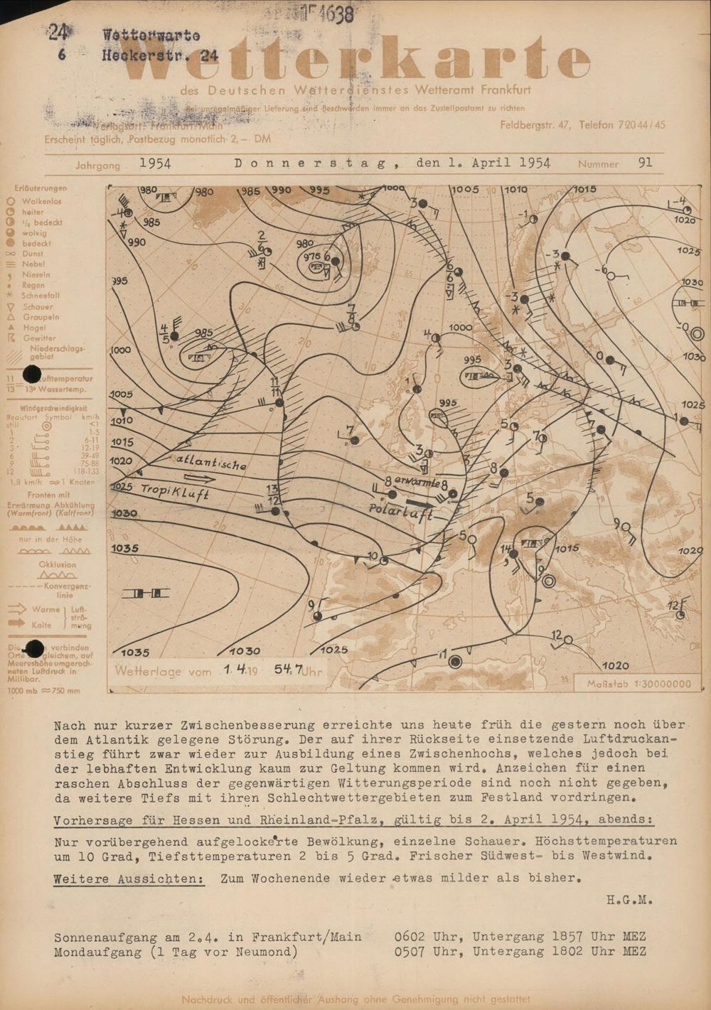 Wetterkarte des Deutschen Wetterdienstes, Wetteramt Frankfurt