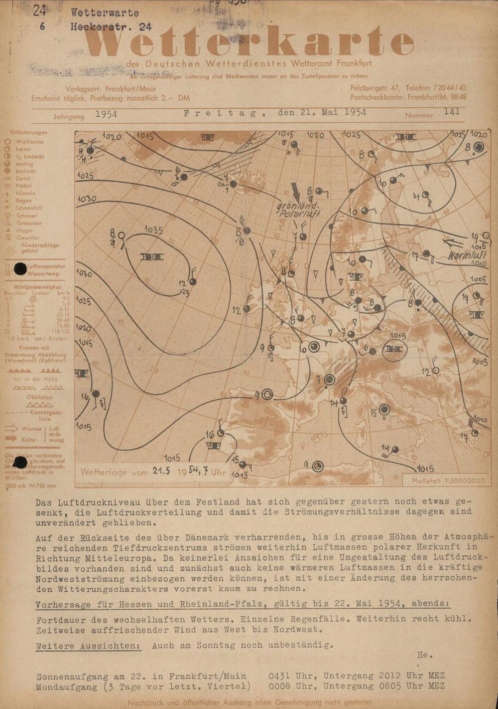 Wetterkarte des Deutschen Wetterdienstes, Wetteramt Frankfurt