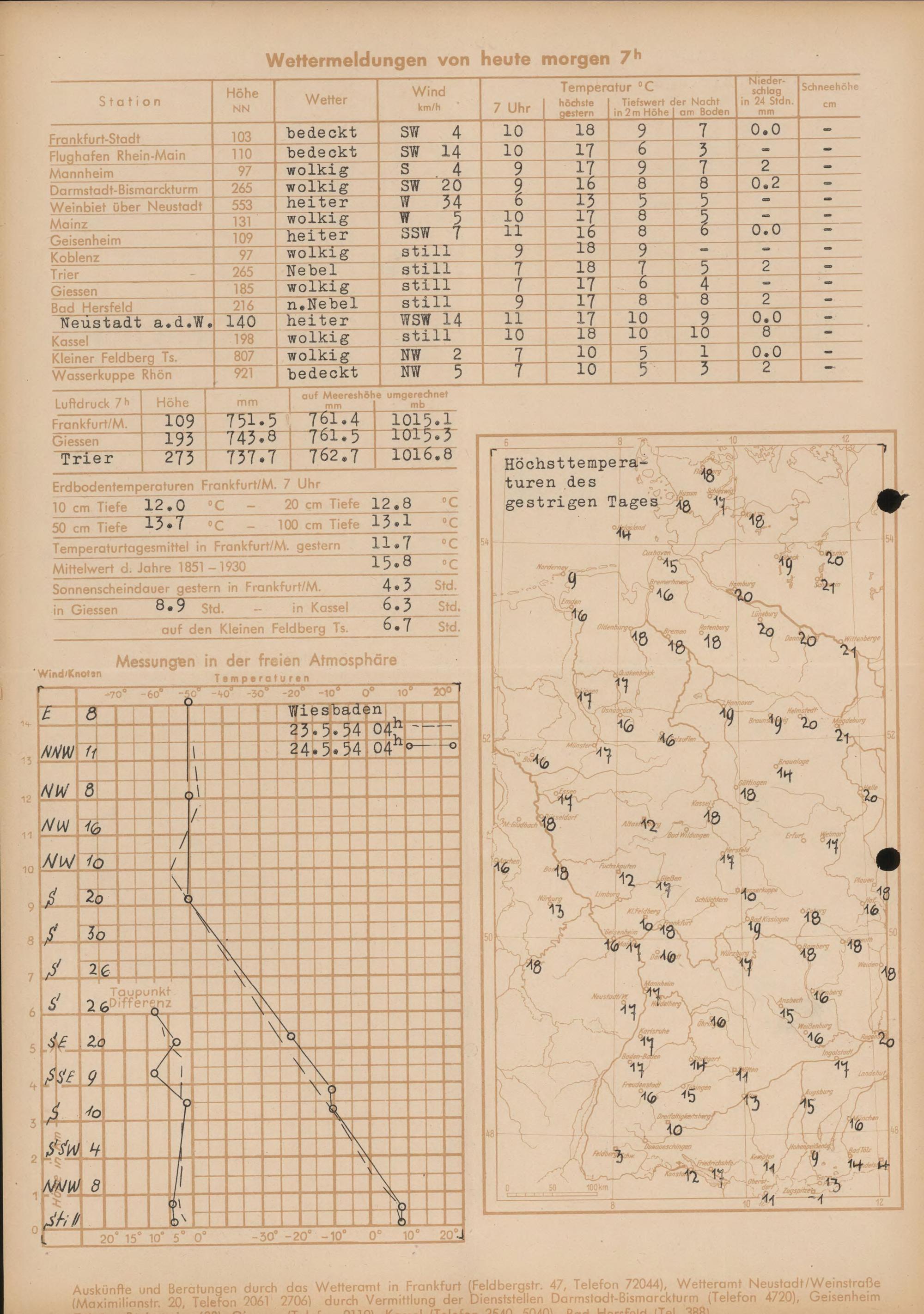 Wetterkarte des Deutschen Wetterdienstes, Wetteramt Frankfurt