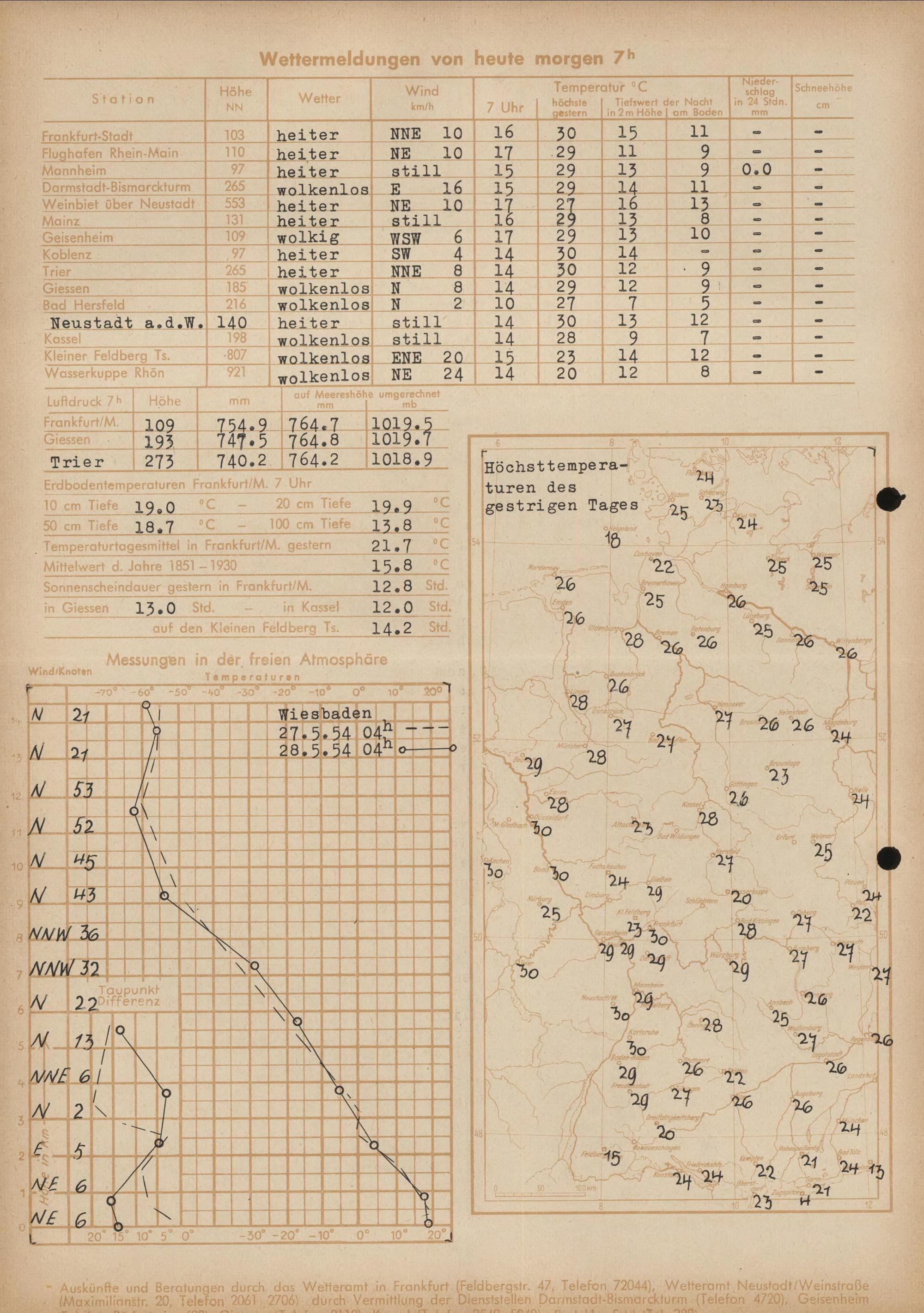 Wetterkarte des Deutschen Wetterdienstes, Wetteramt Frankfurt