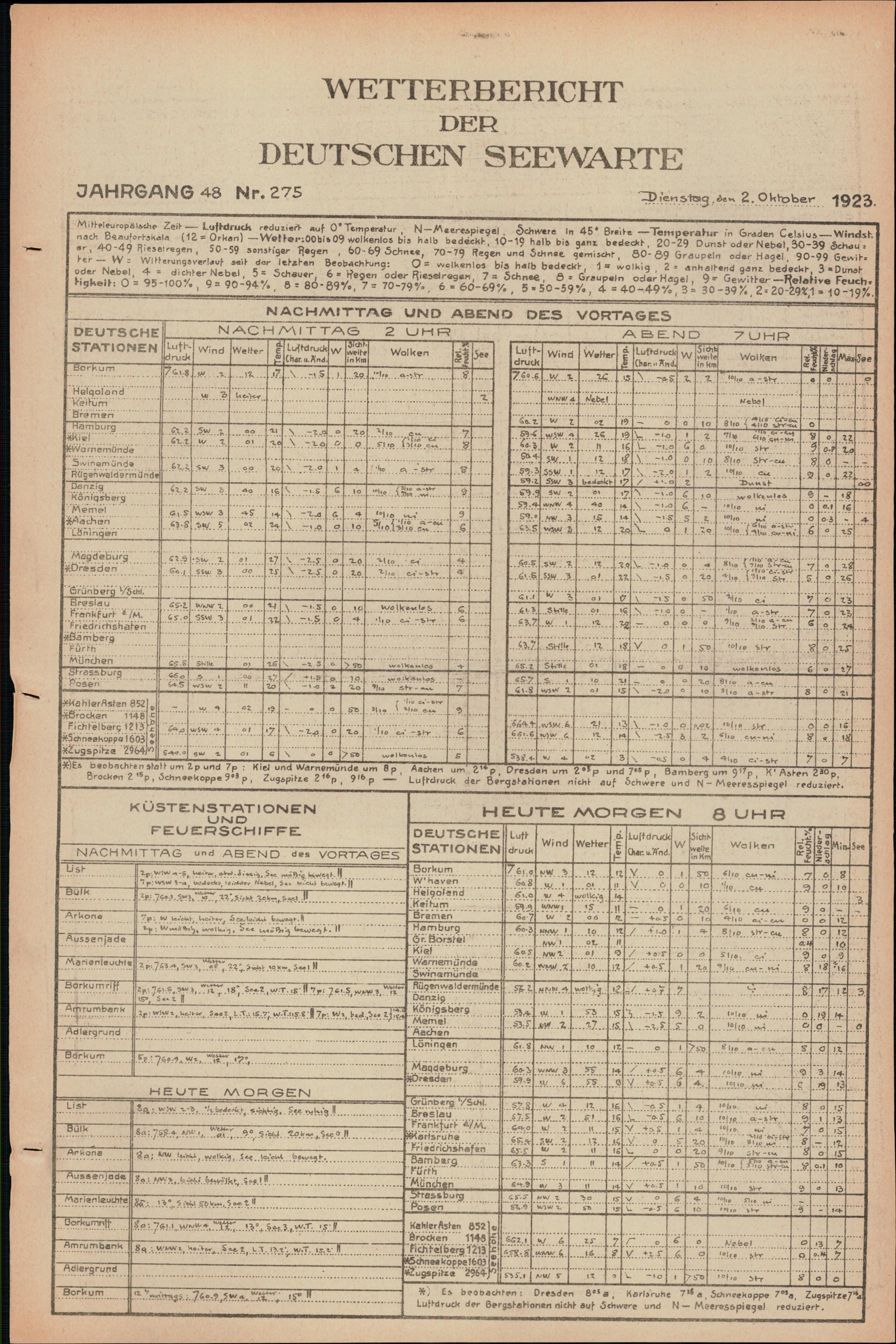 Wetterbericht der Deutschen Seewarte