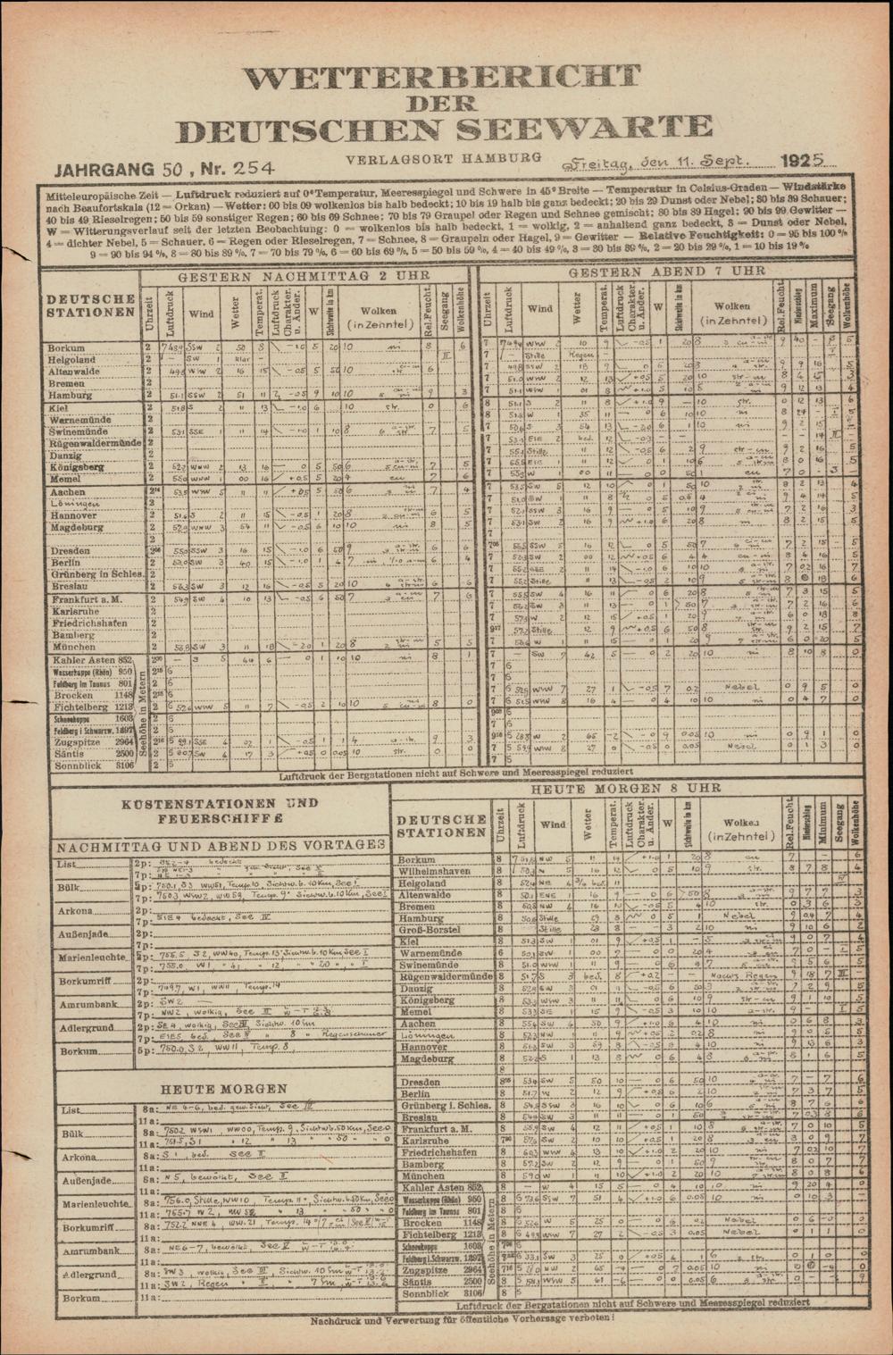 Wetterbericht der Deutschen Seewarte