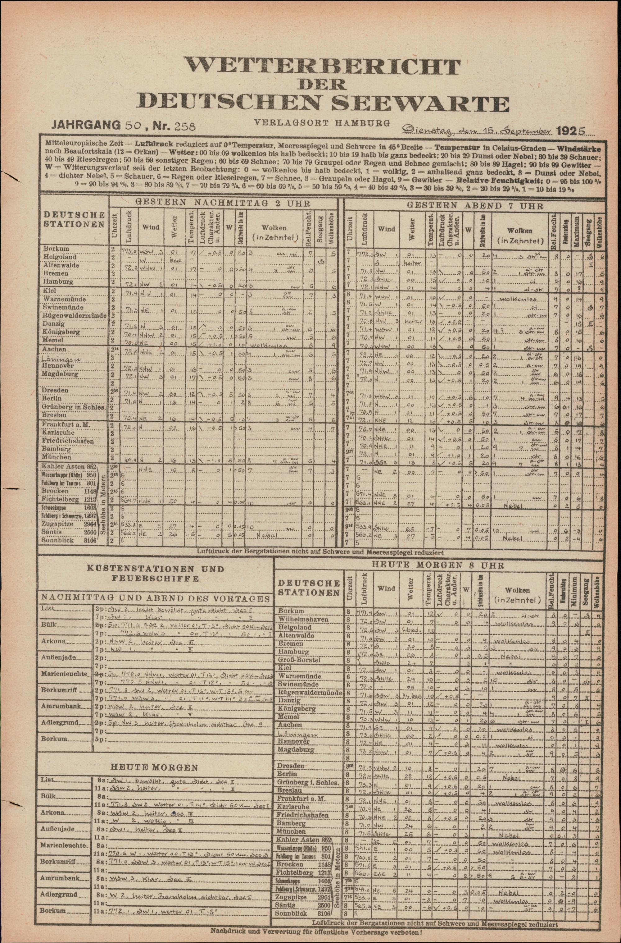 Wetterbericht der Deutschen Seewarte
