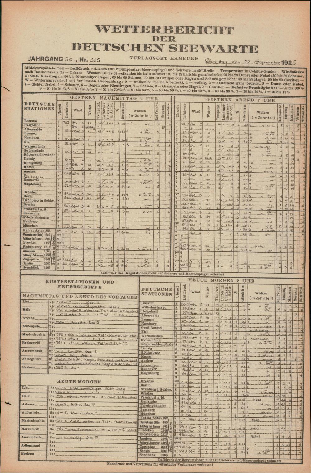 Wetterbericht der Deutschen Seewarte