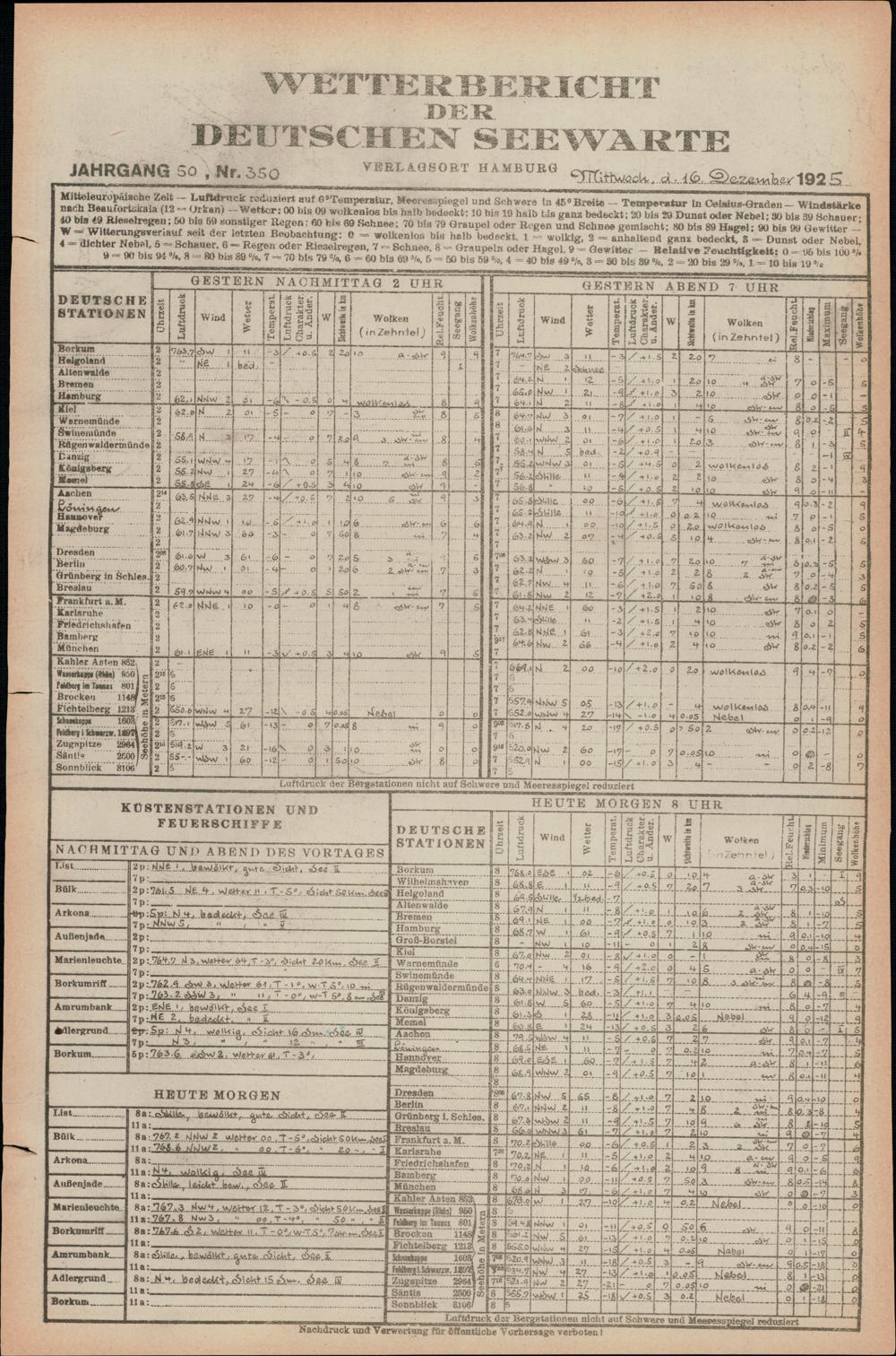 Wetterbericht der Deutschen Seewarte