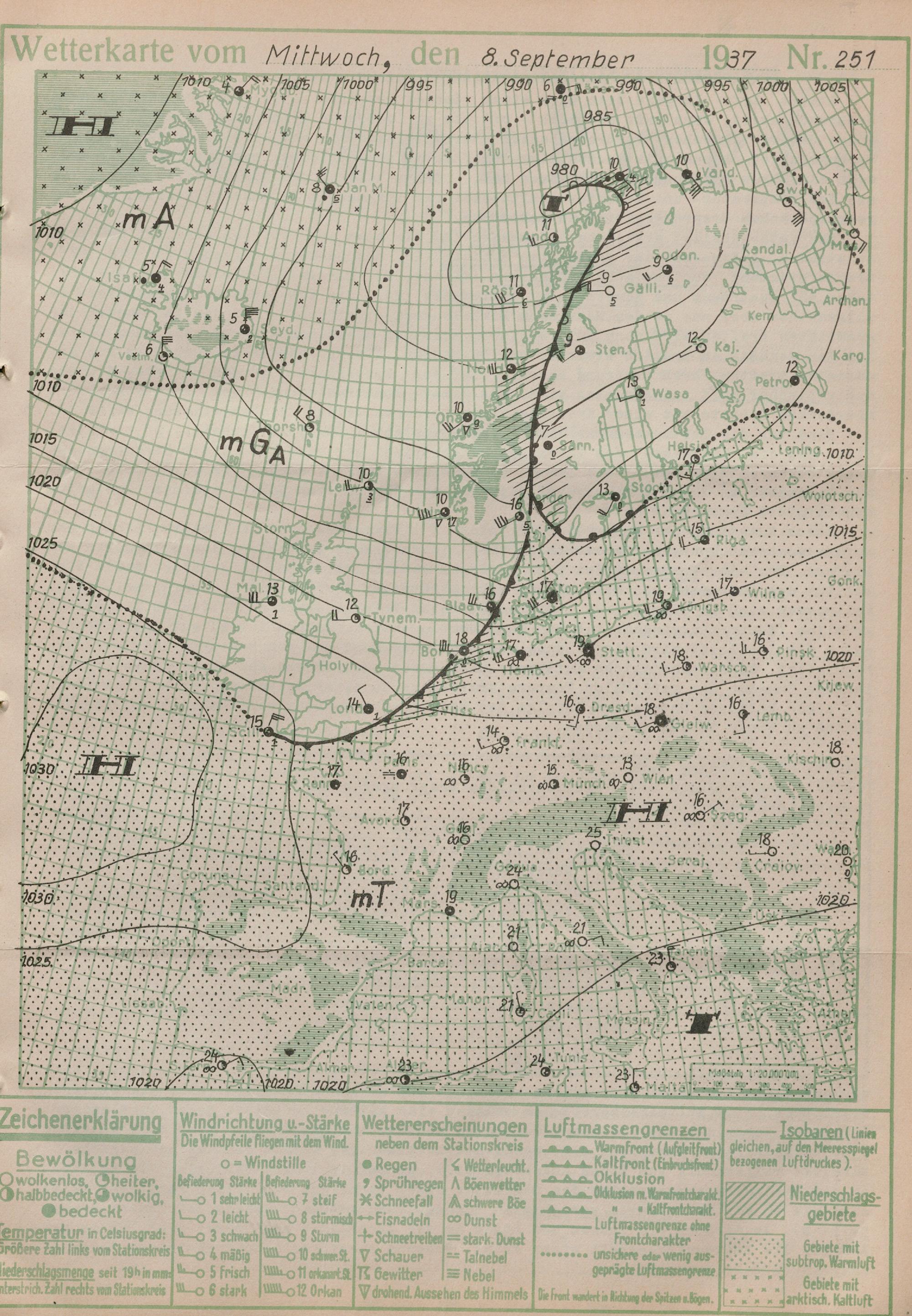 Wetterkarte des Reichswetterdienstes