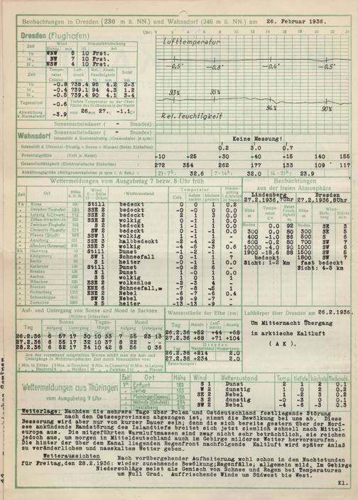 Wetterkarte des Reichswetterdienstes