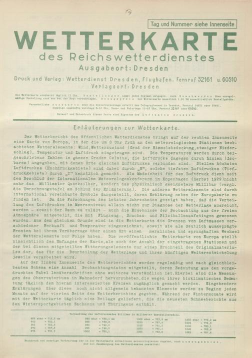 Wetterkarte des Reichswetterdienstes
