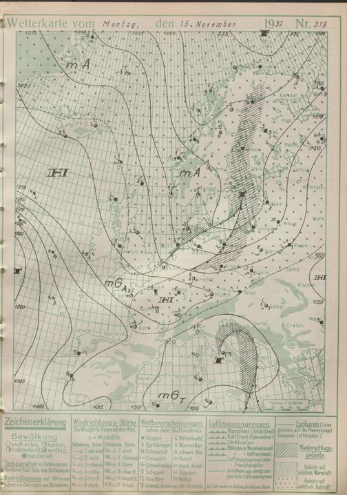 Wetterkarte des Reichswetterdienstes