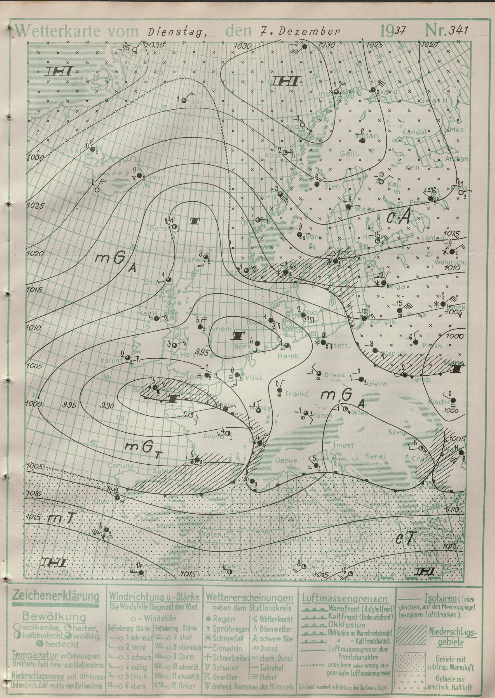 Wetterkarte des Reichswetterdienstes