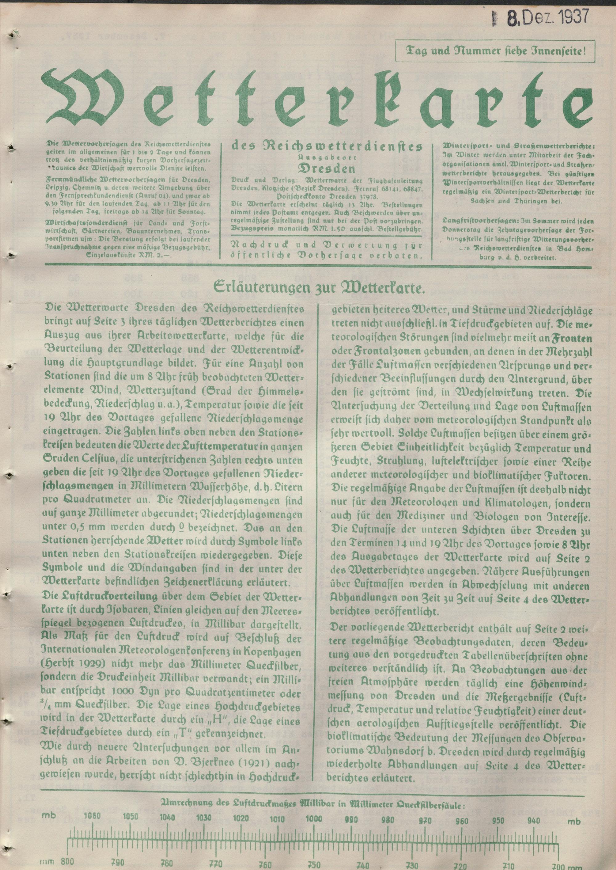 Wetterkarte des Reichswetterdienstes