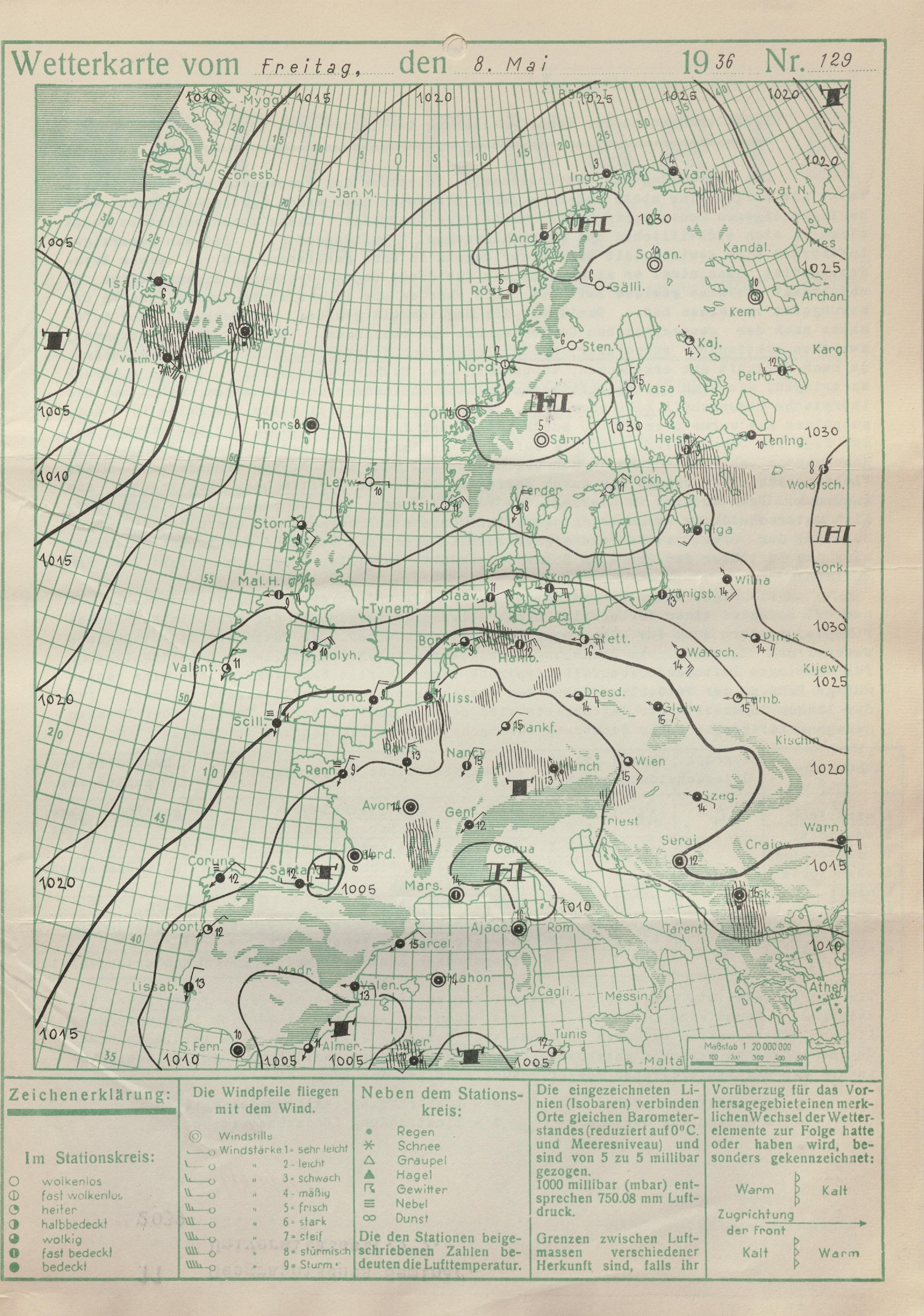 Wetterkarte des Reichswetterdienstes