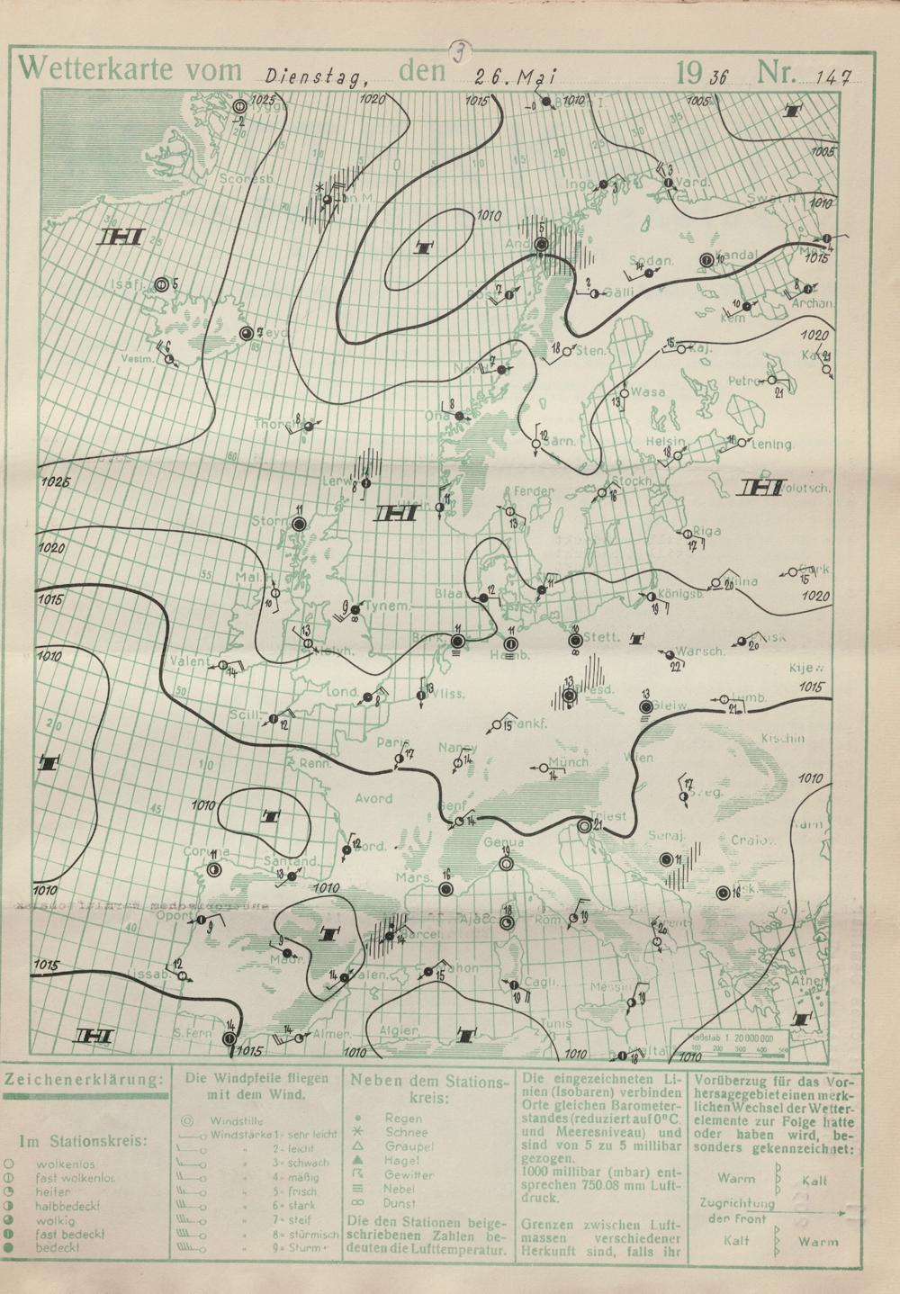 Wetterkarte des Reichswetterdienstes