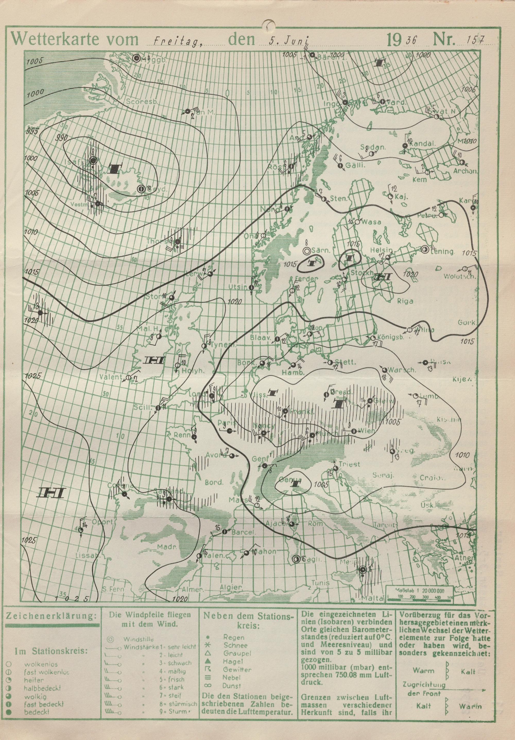 Wetterkarte des Reichswetterdienstes