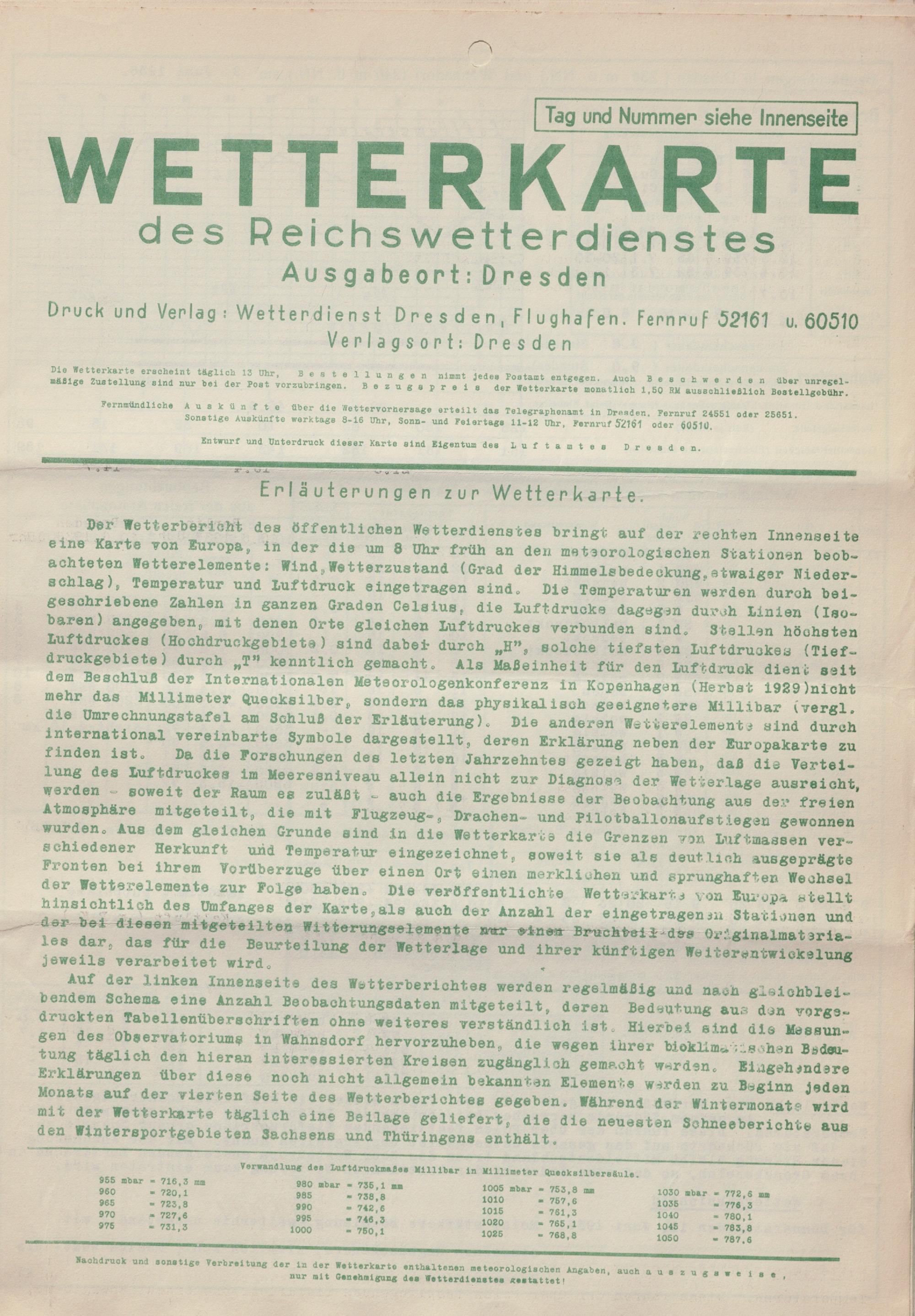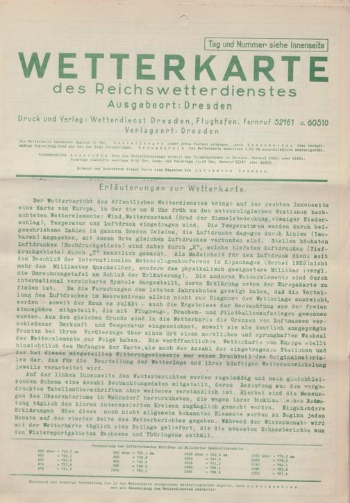 Wetterkarte des Reichswetterdienstes