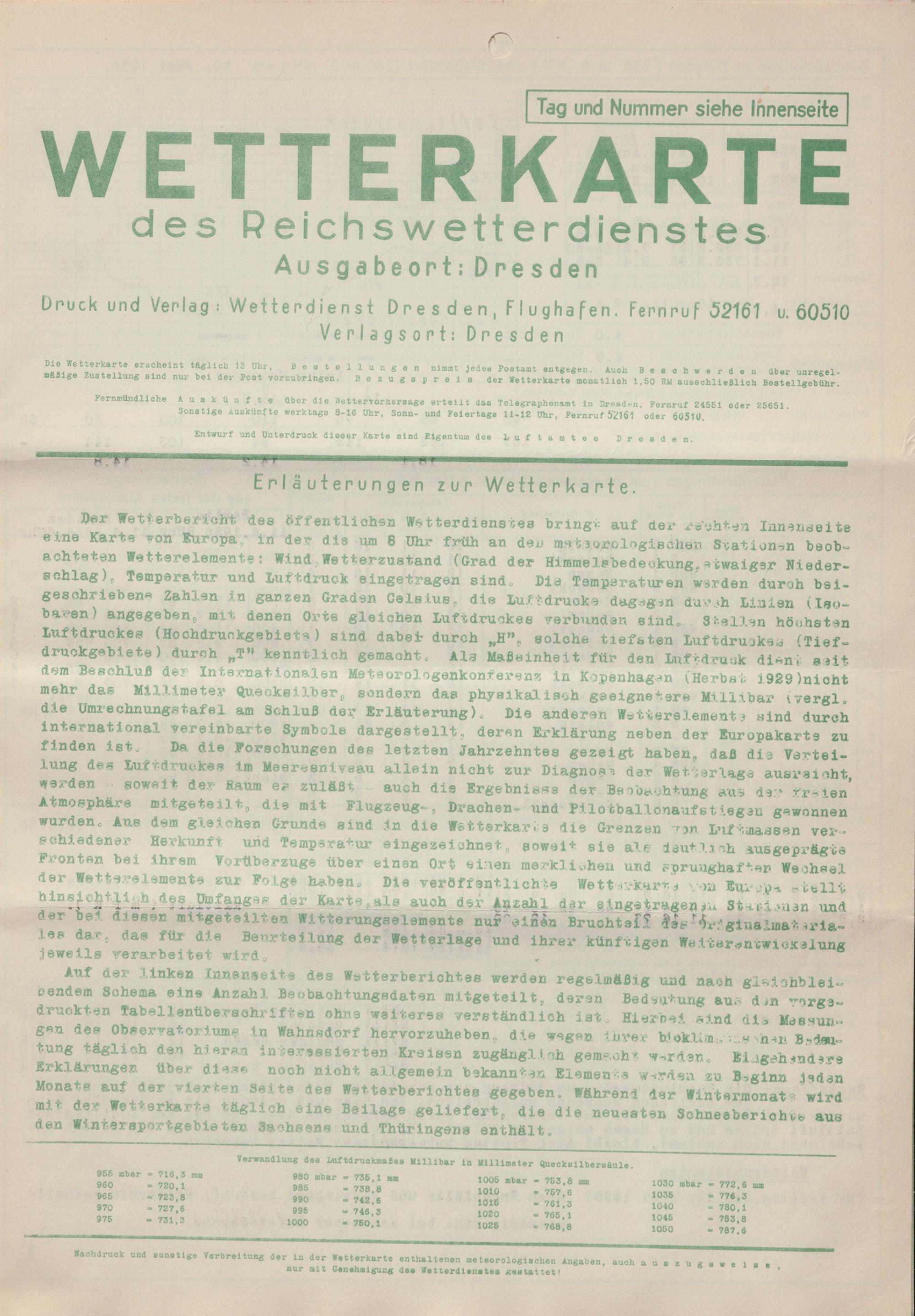 Wetterkarte des Reichswetterdienstes