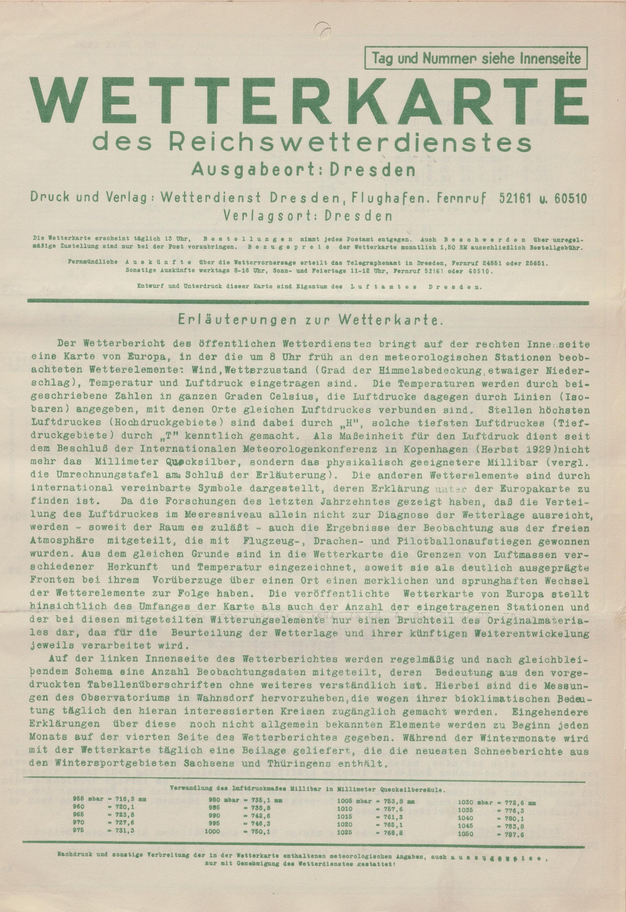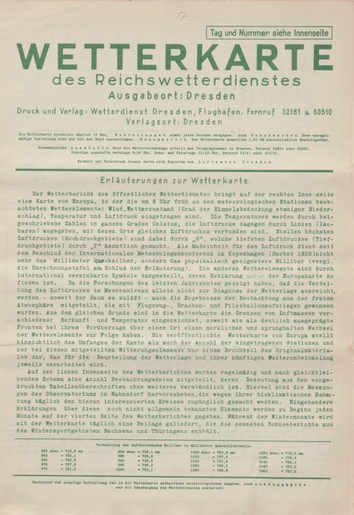 Wetterkarte des Reichswetterdienstes