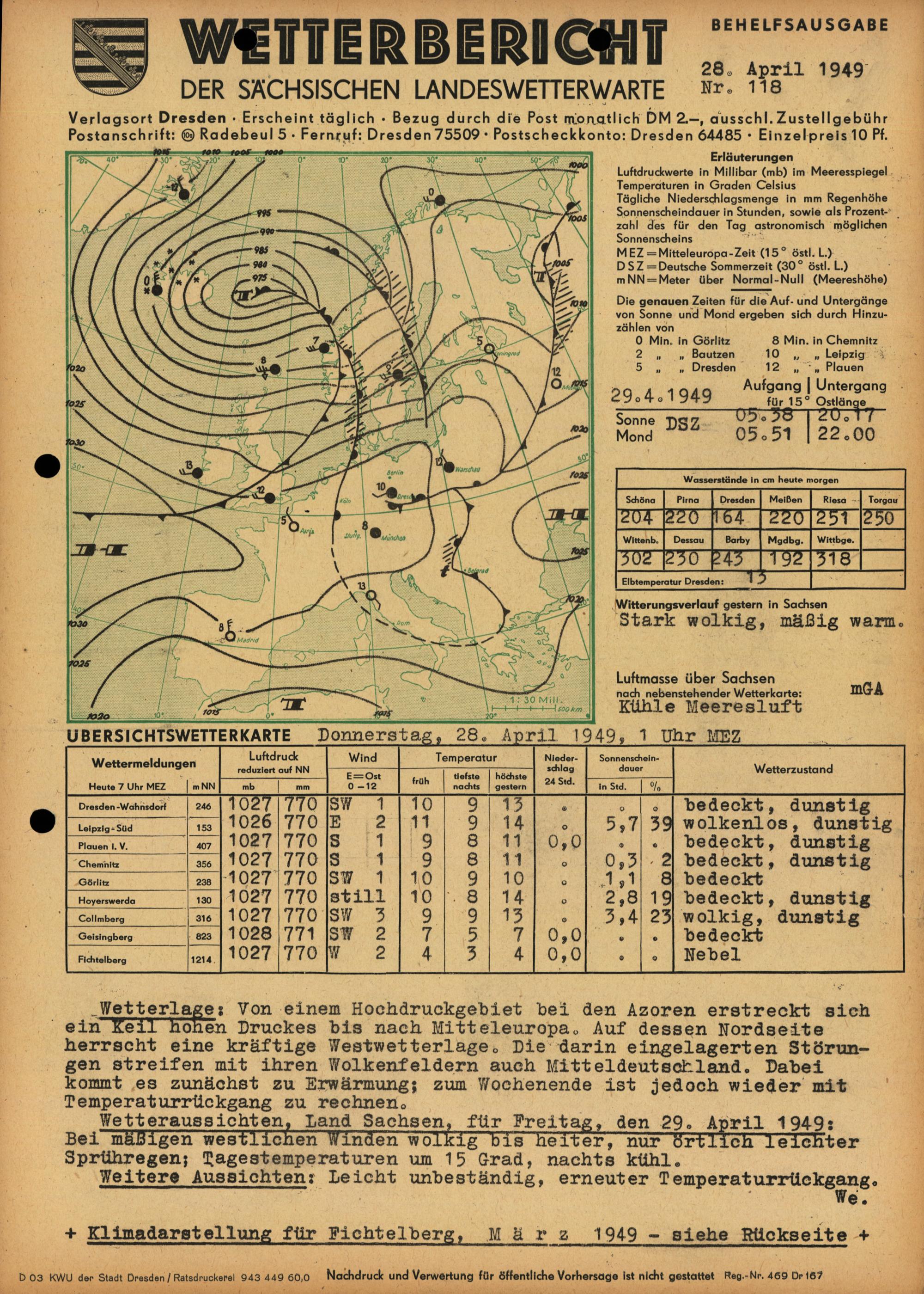Wetterbericht der Sächsischen Landeswetterwarte