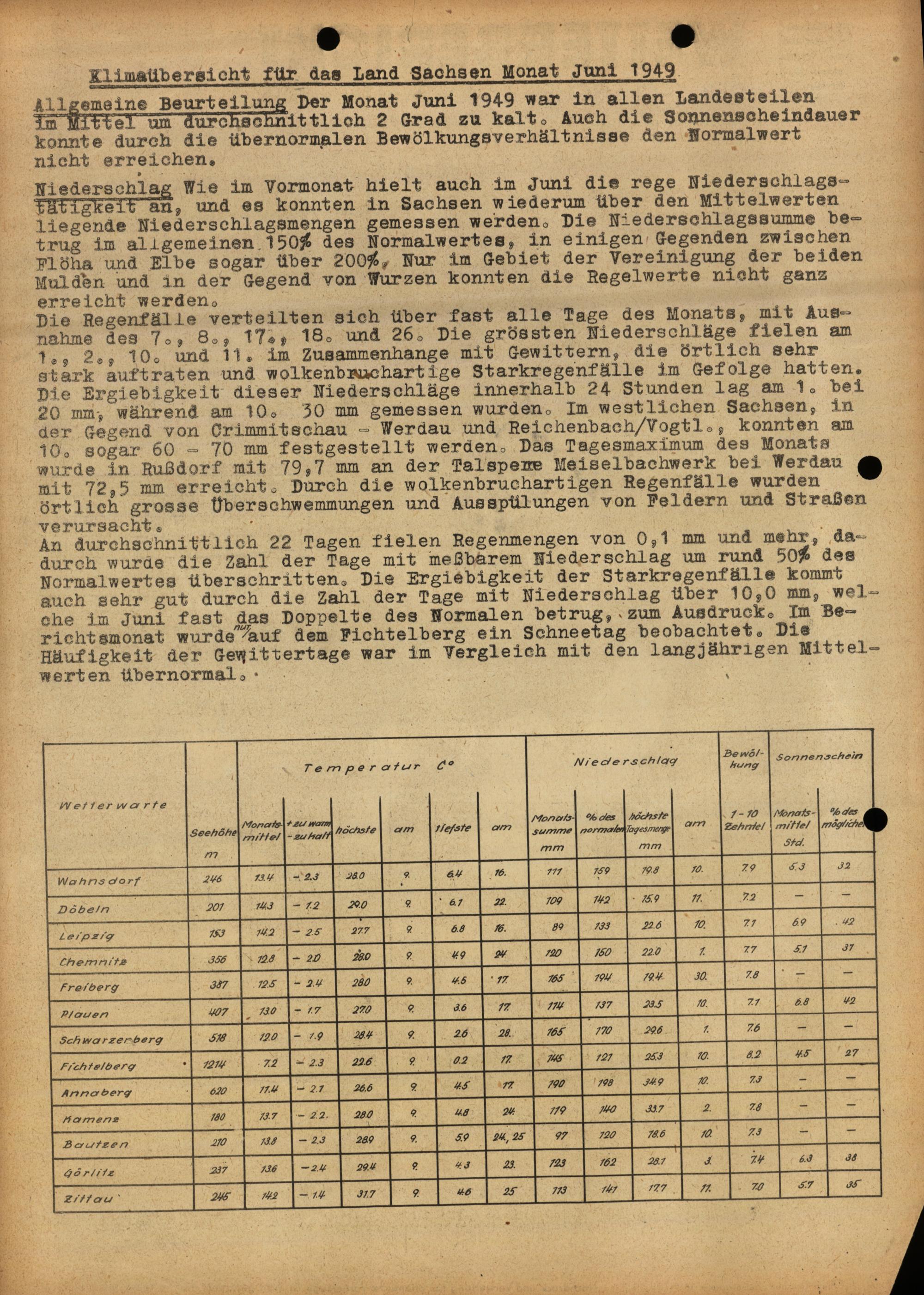Wetterbericht der Sächsischen Landeswetterwarte