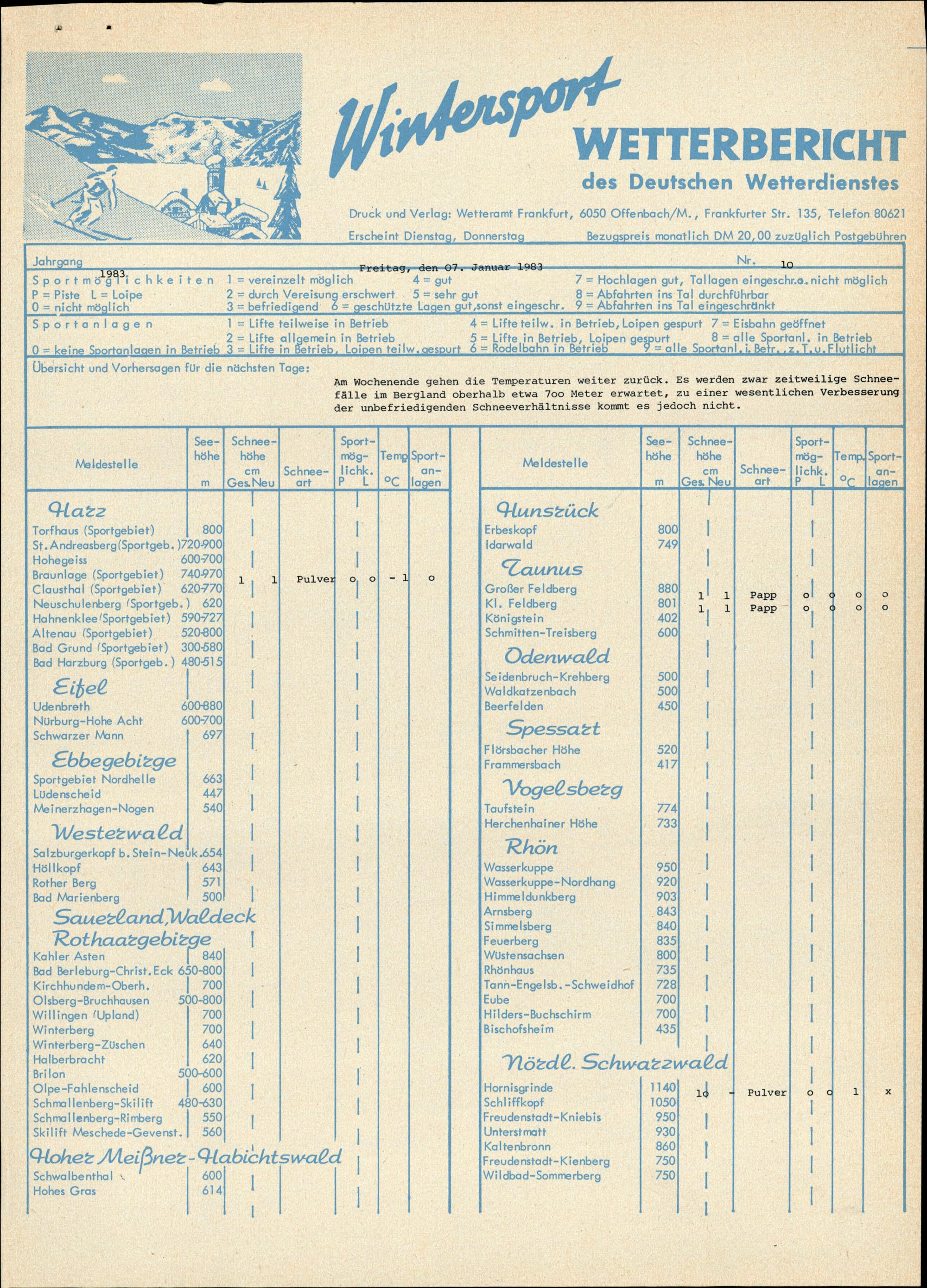 Ausgabeort Wetteramt Frankfurt/Main