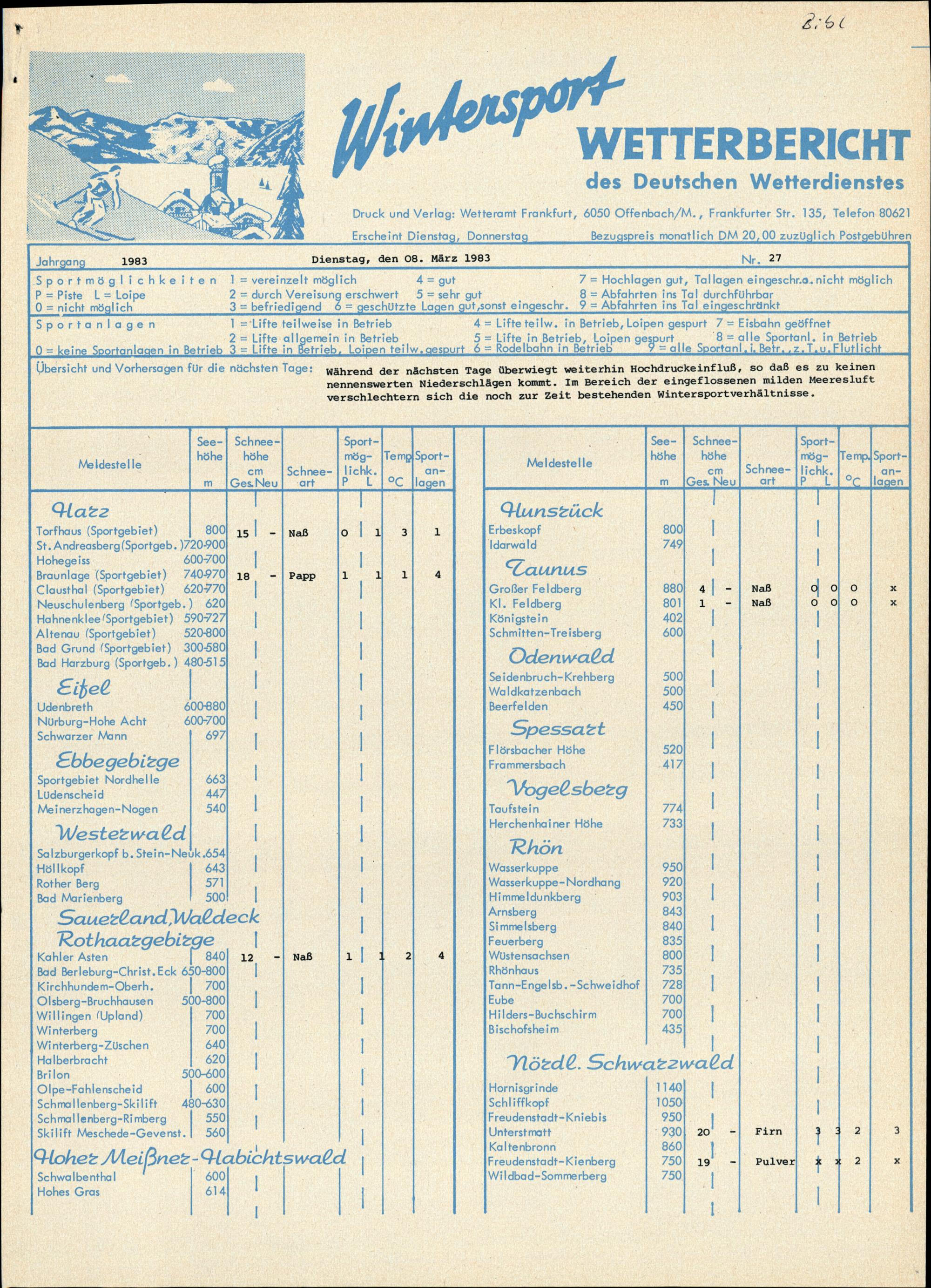 Ausgabeort Wetteramt Frankfurt/Main