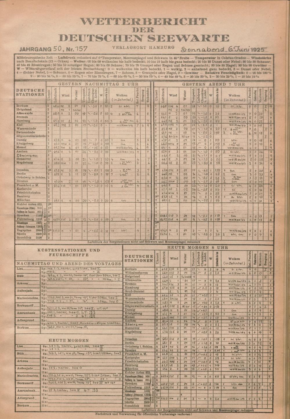 Wetterbericht der Deutschen Seewarte