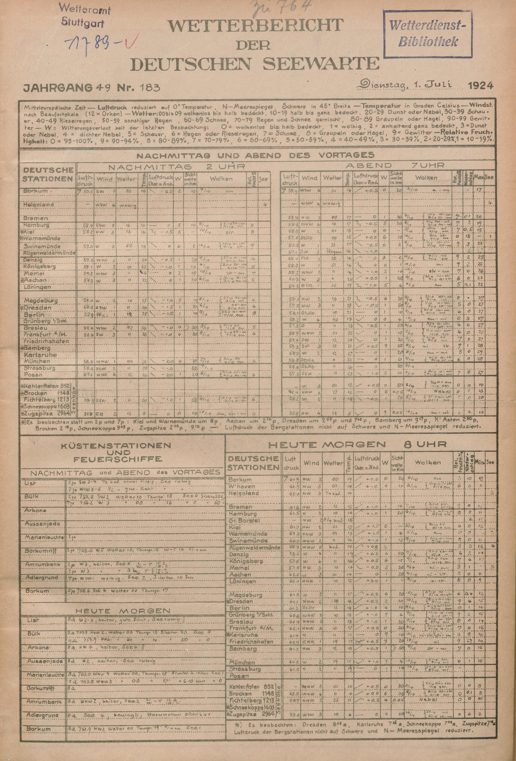 Wetterbericht der Deutschen Seewarte