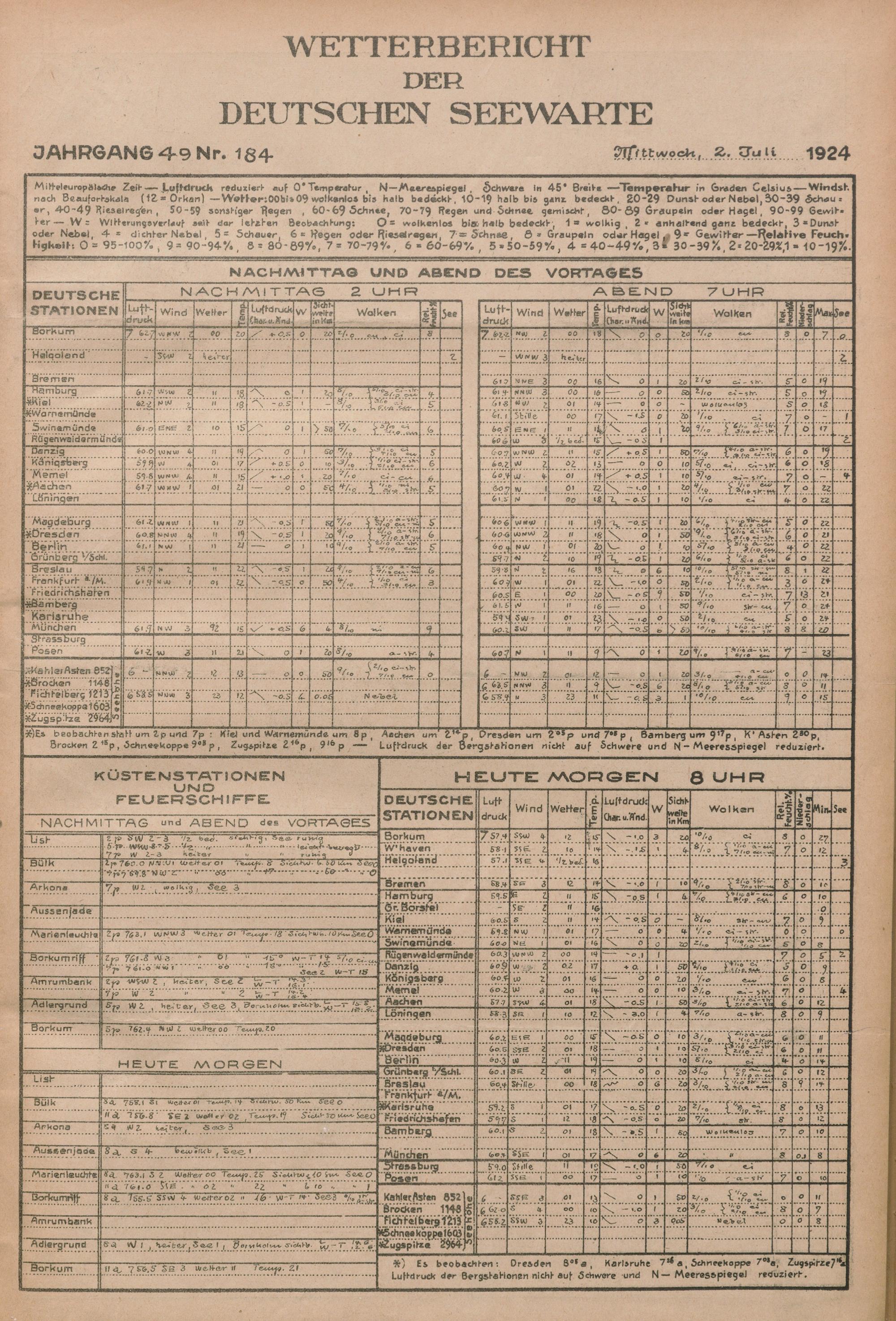 Wetterbericht der Deutschen Seewarte