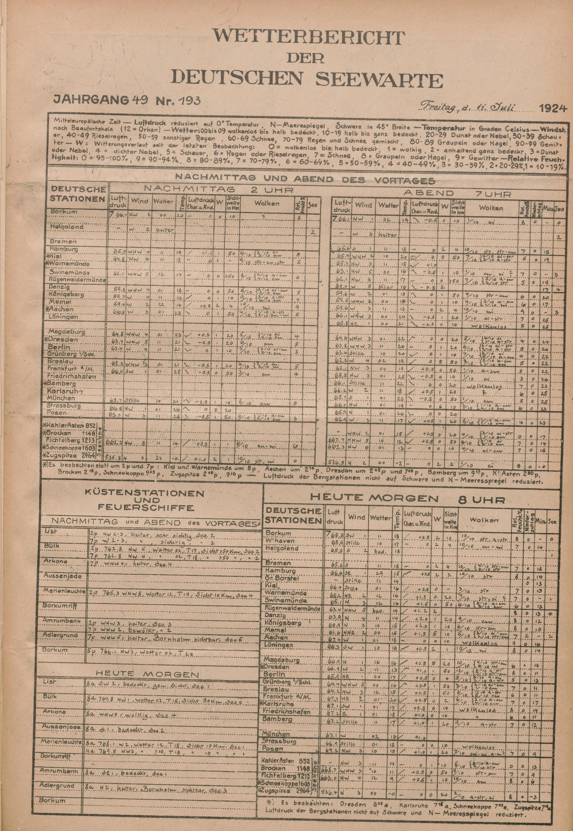 Wetterbericht der Deutschen Seewarte