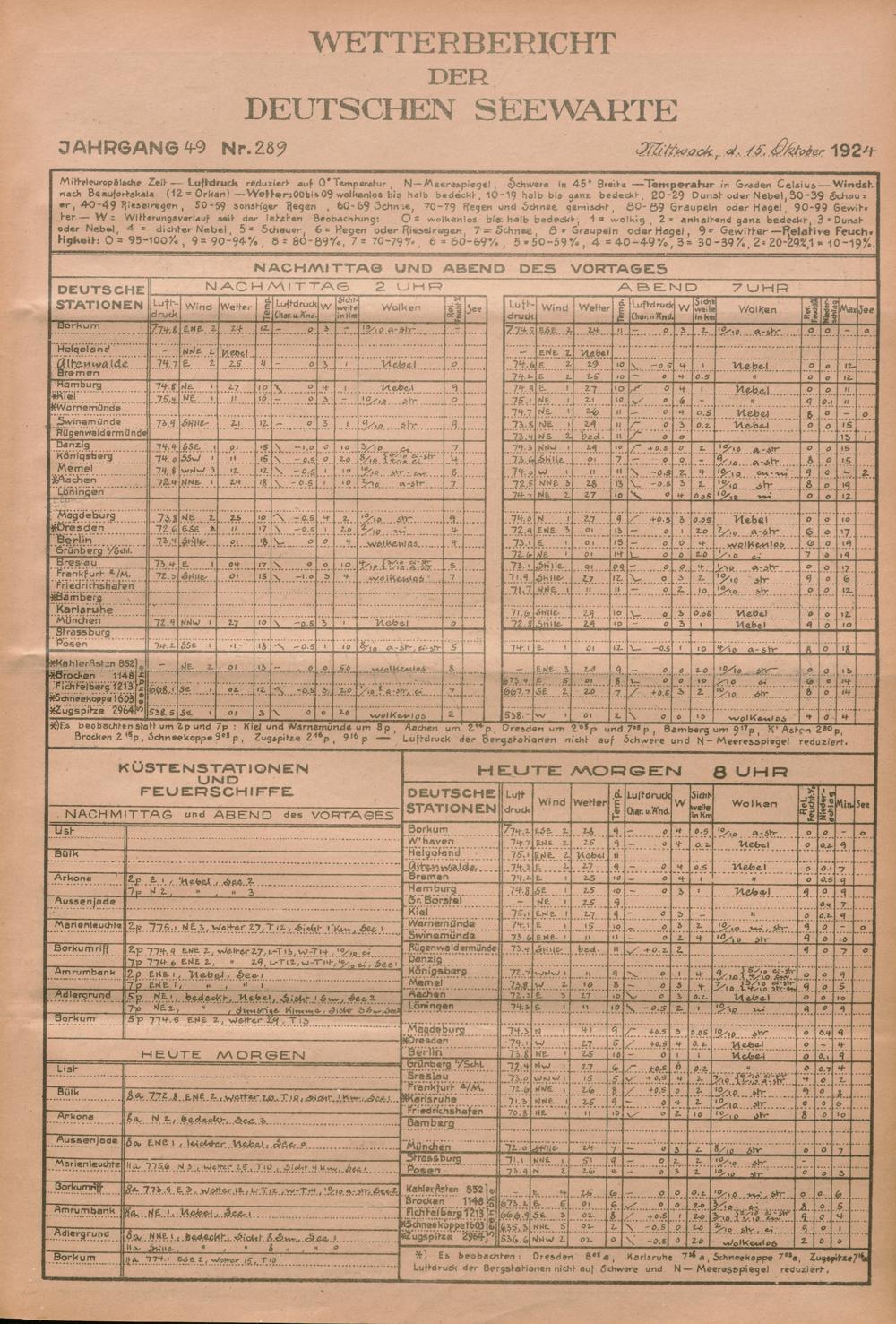 Wetterbericht der Deutschen Seewarte