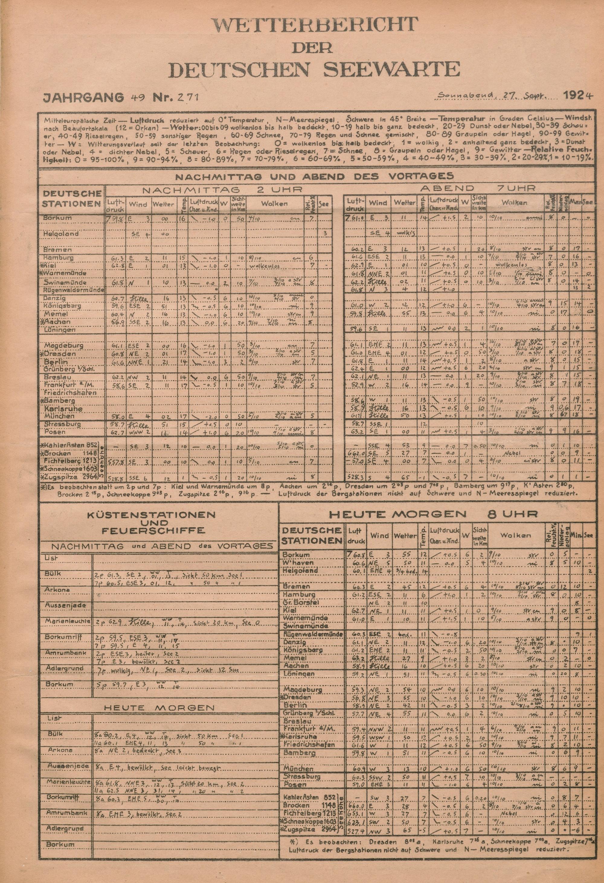 Wetterbericht der Deutschen Seewarte
