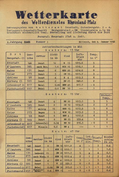 Wetterkarte des Wetterdienstes Rheinland-Pfalz