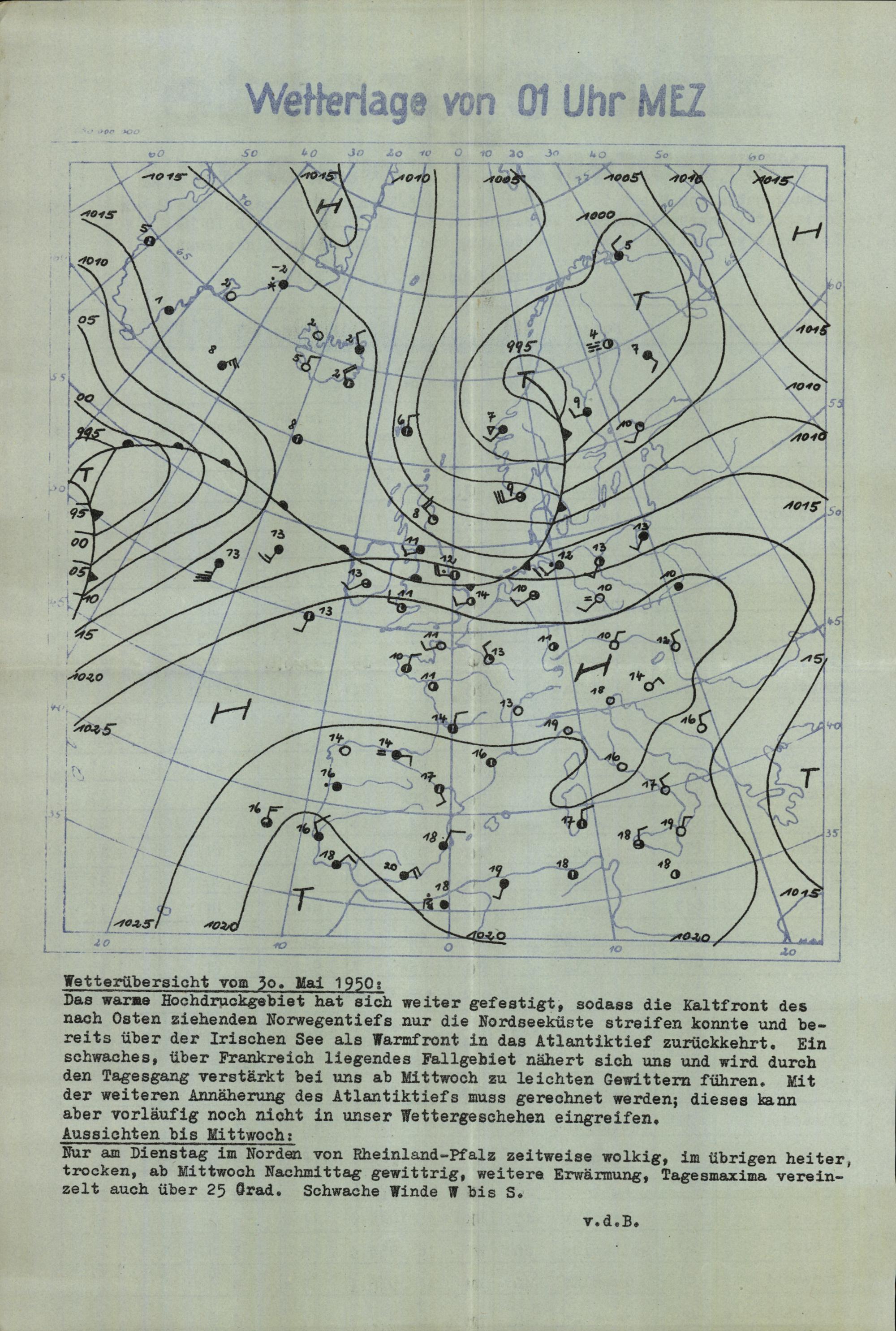 Wetterkarte des Wetterdienstes Rheinland-Pfalz