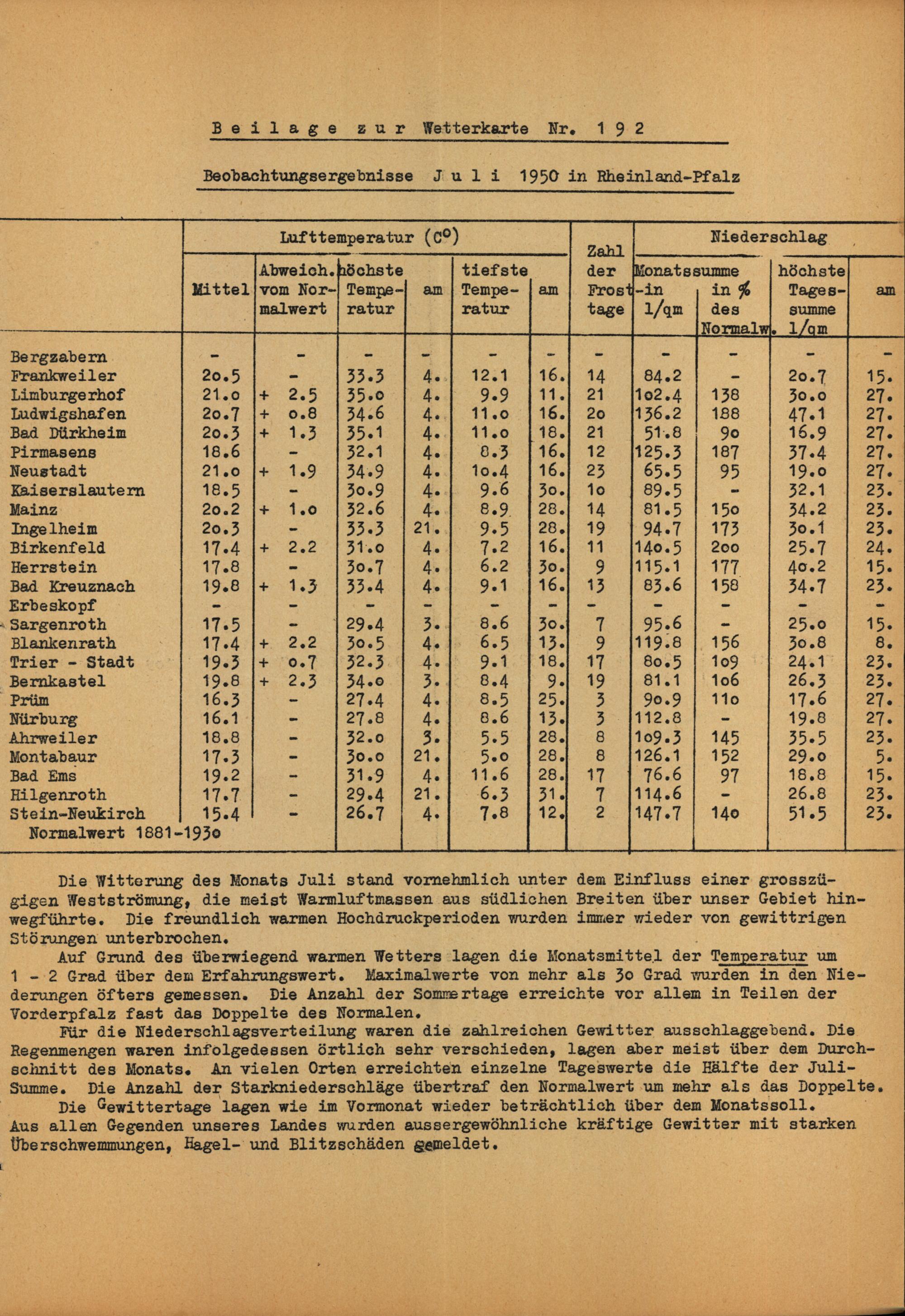 Wetterkarte des Wetterdienstes Rheinland-Pfalz