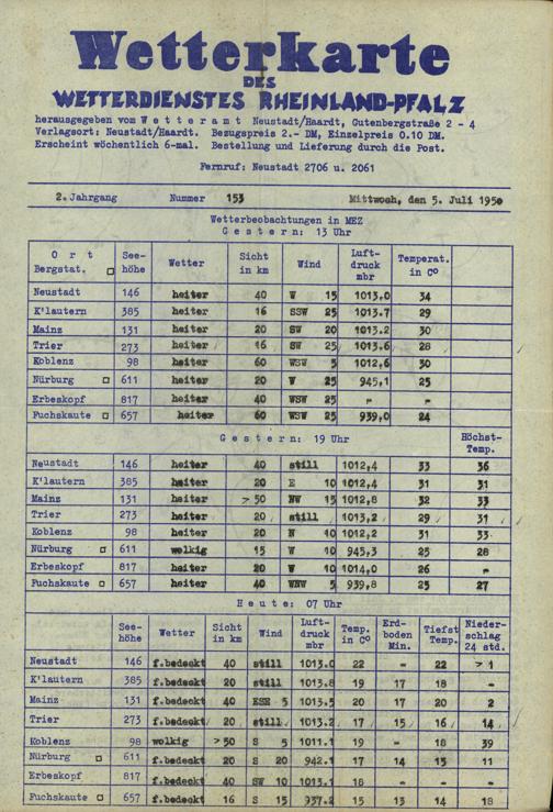 Wetterkarte des Wetterdienstes Rheinland-Pfalz