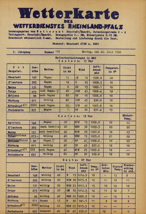 Wetterkarte des Wetterdienstes Rheinland-Pfalz
