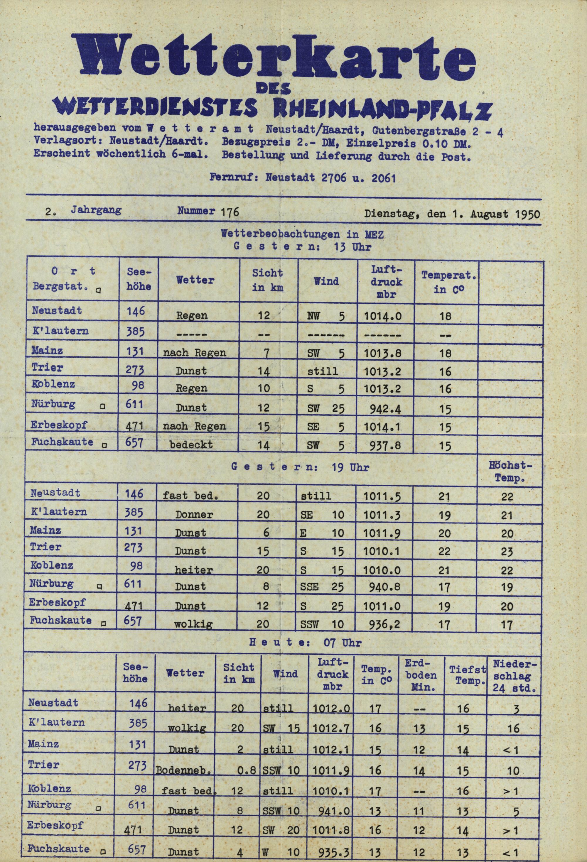 Wetterkarte des Wetterdienstes Rheinland-Pfalz