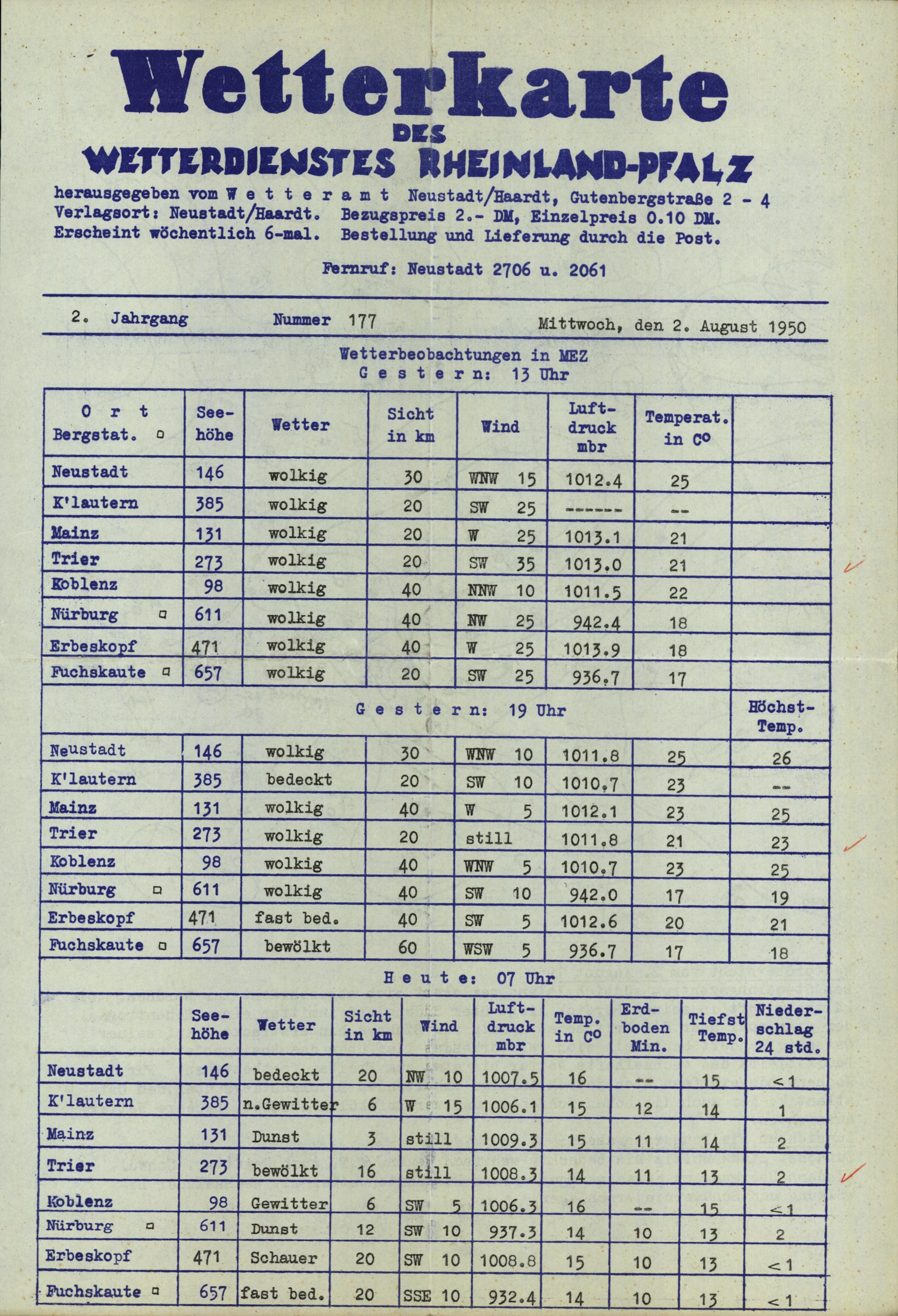 Wetterkarte des Wetterdienstes Rheinland-Pfalz