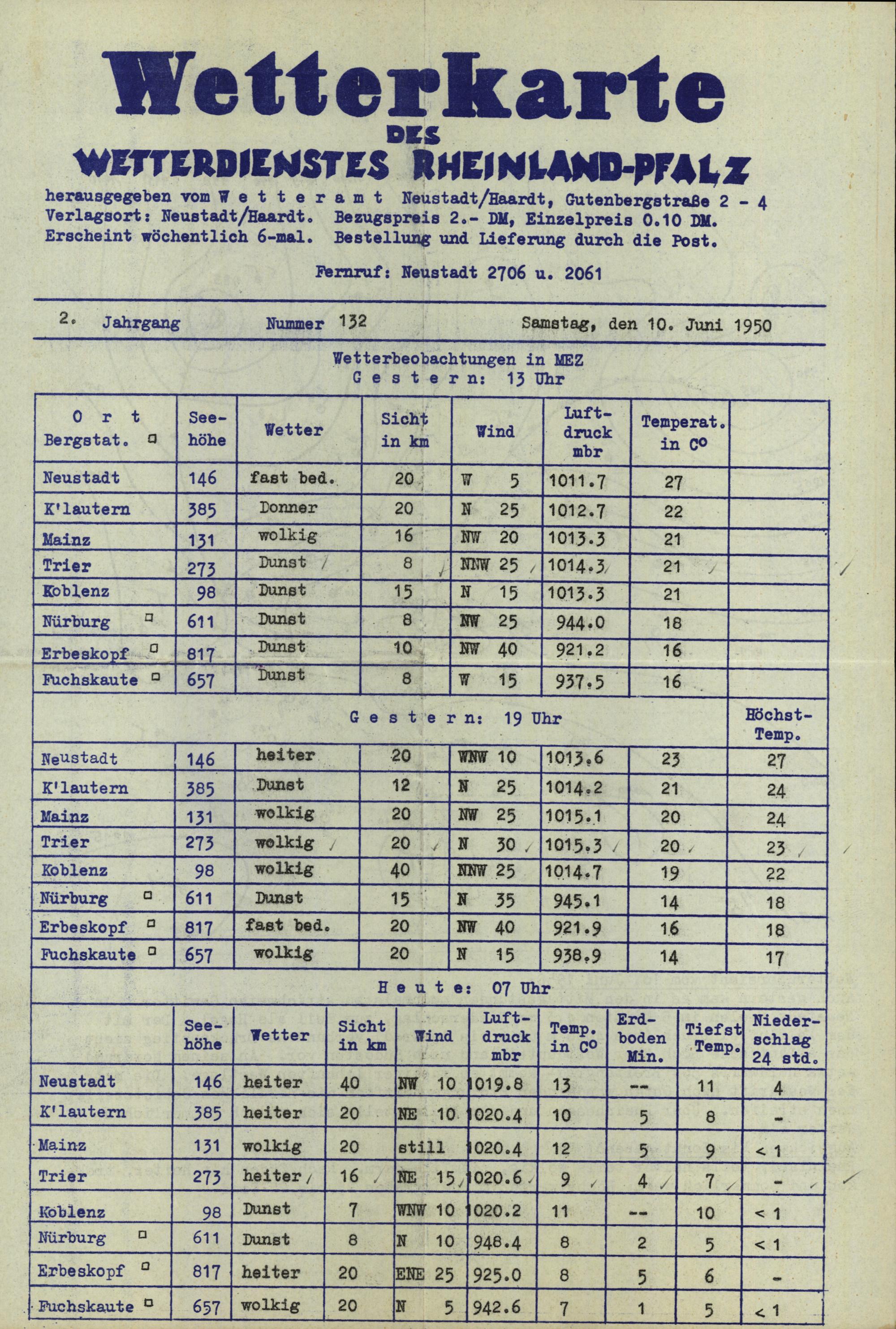 Wetterkarte des Wetterdienstes Rheinland-Pfalz