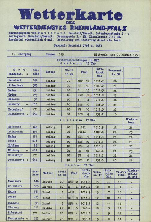 Wetterkarte des Wetterdienstes Rheinland-Pfalz