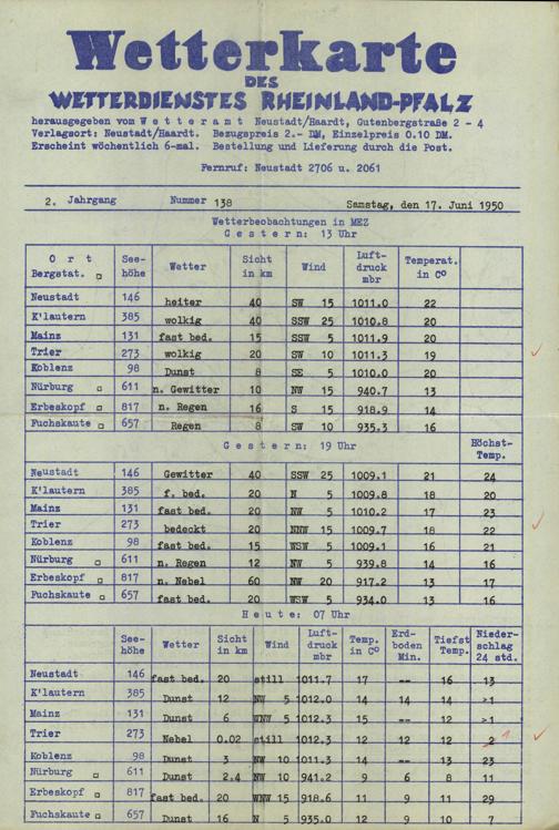 Wetterkarte des Wetterdienstes Rheinland-Pfalz