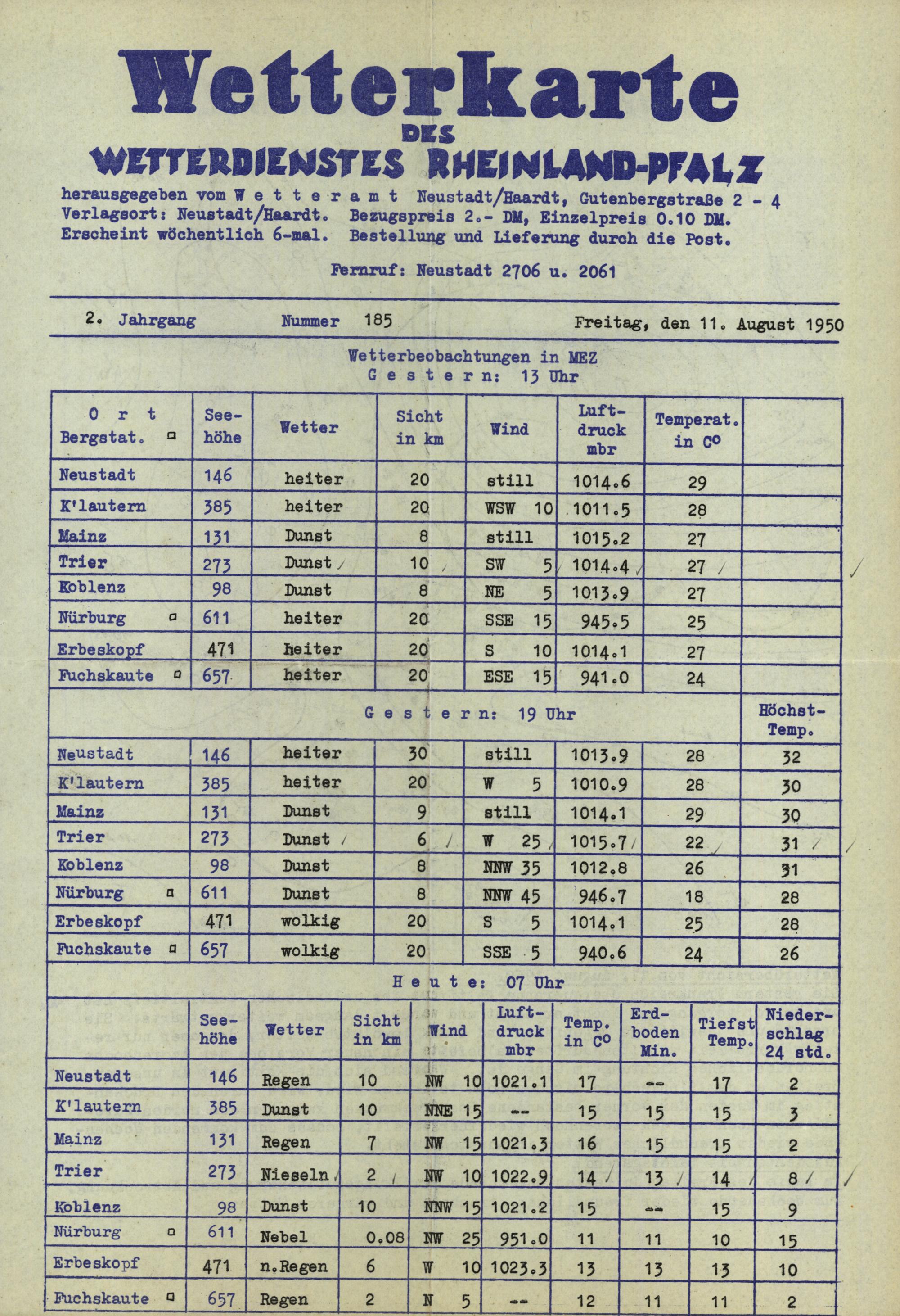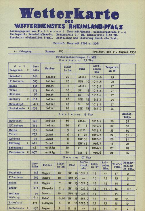 Wetterkarte des Wetterdienstes Rheinland-Pfalz