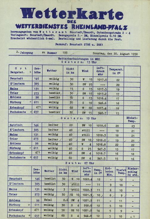 Wetterkarte des Wetterdienstes Rheinland-Pfalz