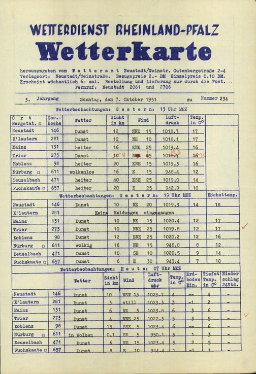 Wetterkarte des Wetterdienstes Rheinland-Pfalz